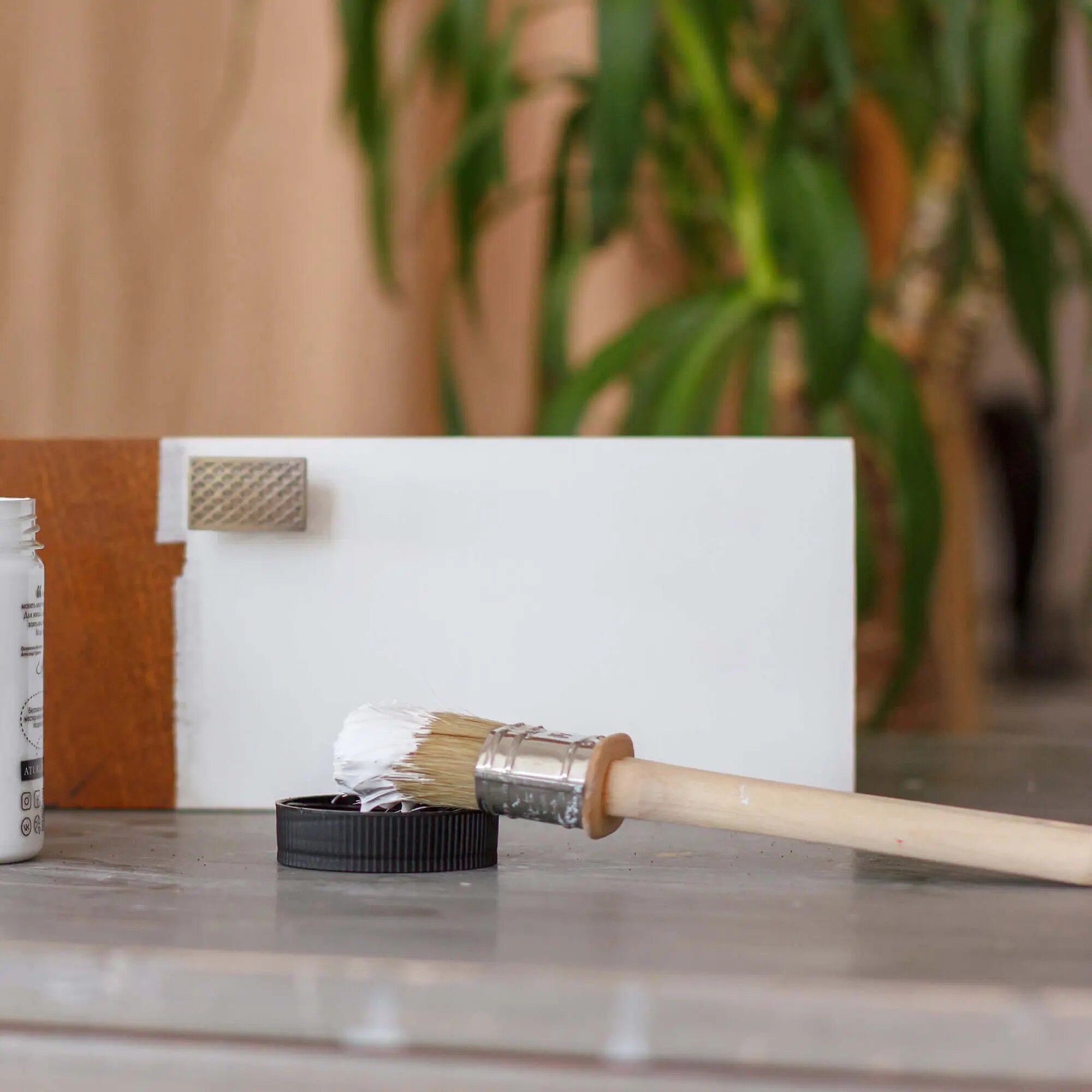 Матовая краска для мебели Aturi Design Mia 0,4 кг. Цвет: Бежевый мрамор, бежевый, без запаха, меловая, быстросохнущая