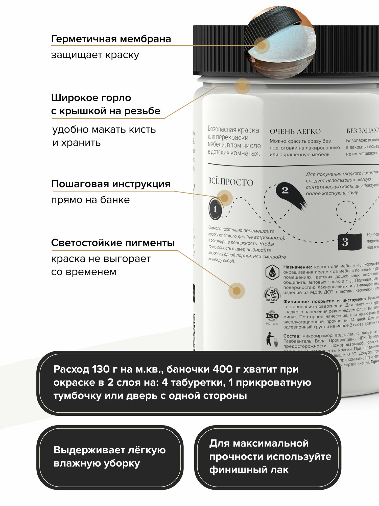 Меловая краска Aturi Design Mia, для мебели и декора, меловой бархат, матовая 0,4 кг Цвет: Белоснежный, белый