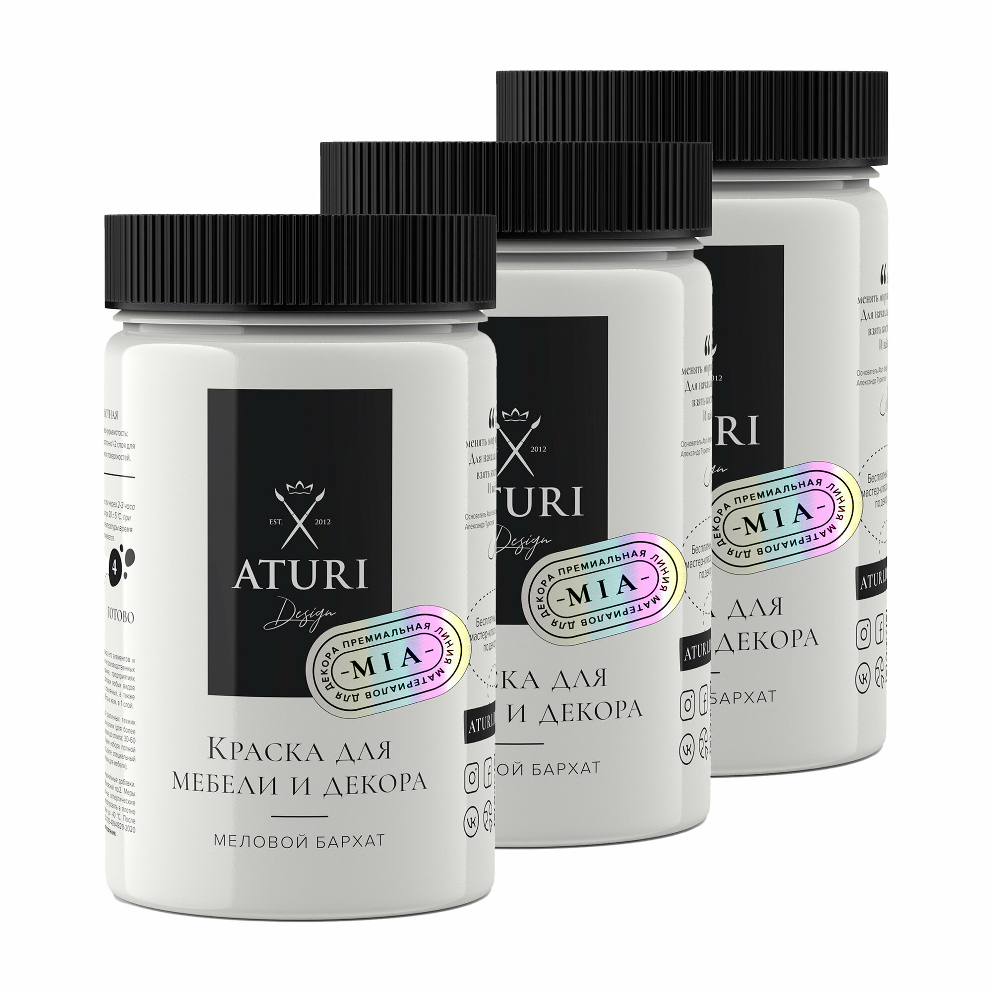 Набор 3 шт по 0,4 кг. Матовая краска для мебели без запаха, меловая быстросохнущая Aturi Design. Цвет: Сензария