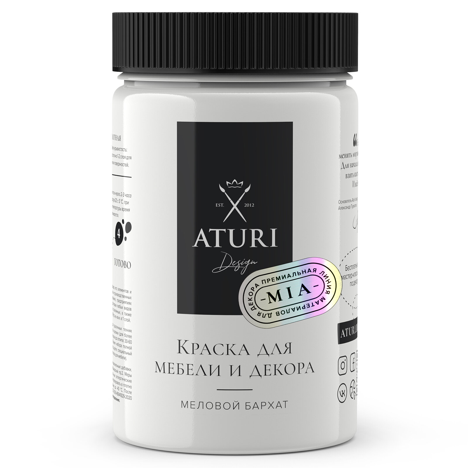 Краска для мебели и декора Aturi Design Mia меловая. Цвет: Черный бархат. Матовая, 0,4 кг, Черный Без запаха.