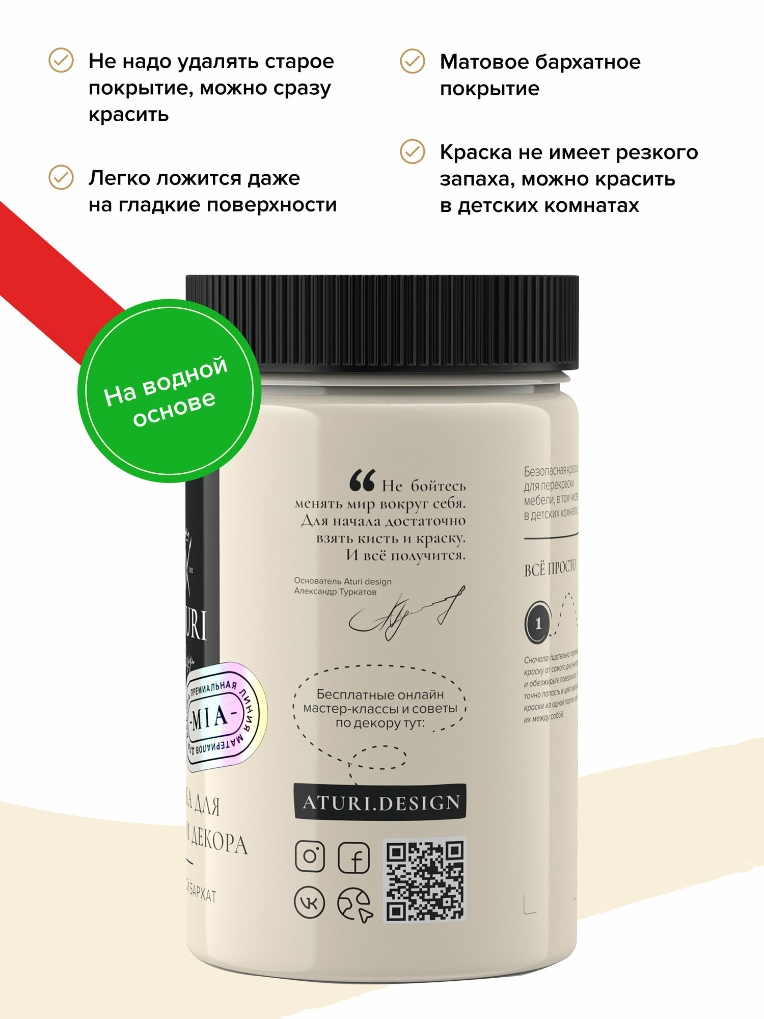 Меловая краска Aturi Design Mia, для мебели и декора, меловой бархат, матовая 0,4 кг Цвет: Ванильный мусс
