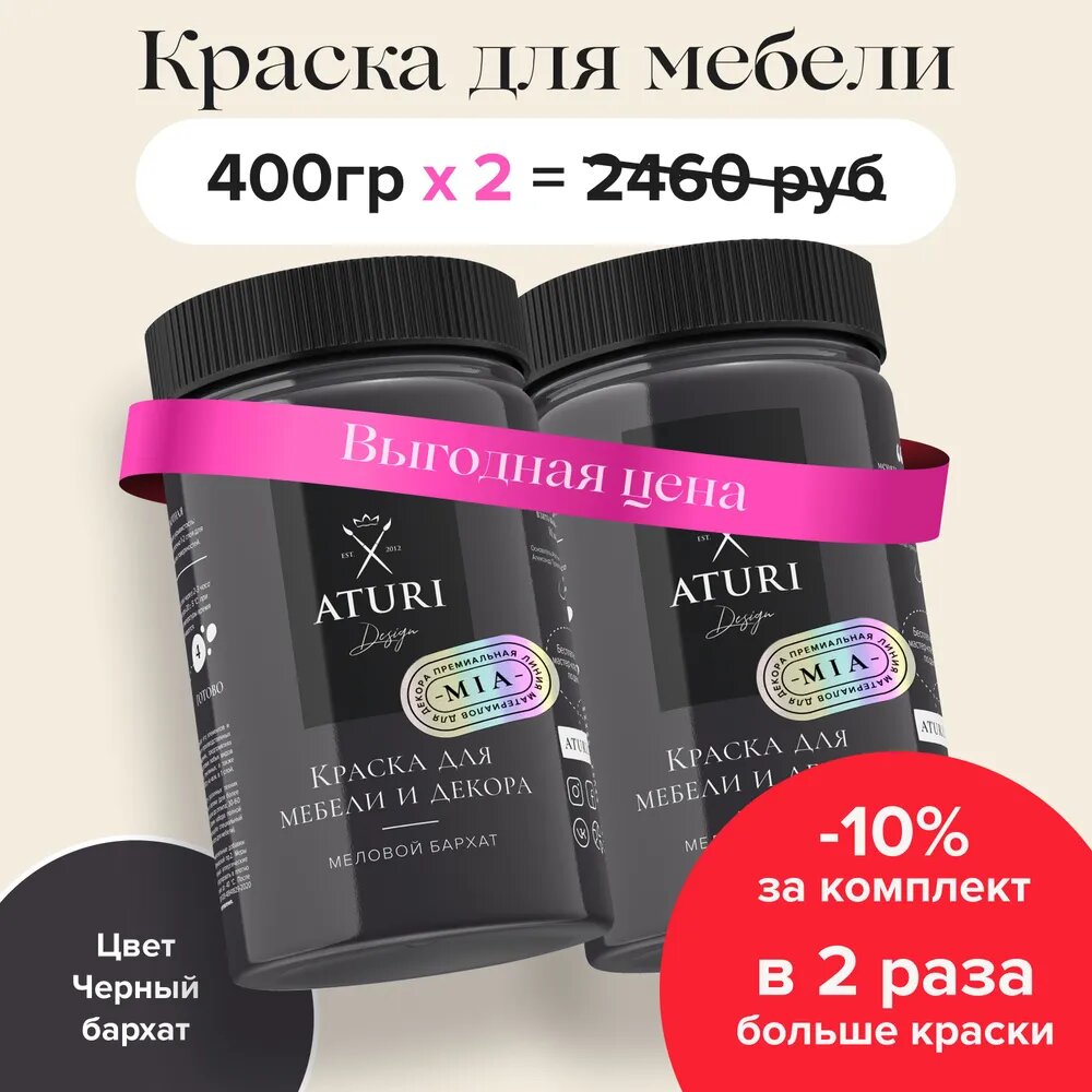Набор 2 шт по 0,4 кг. Матовая краска для мебели без запаха, меловая Aturi Design Цвет: Черный бархат, чёрный
