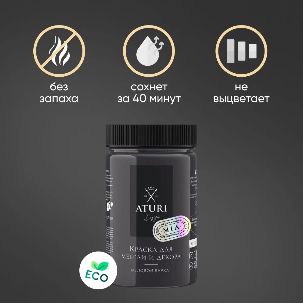 Краска для мебели и декора Aturi Design Mia меловая. Цвет: Черный бархат. Матовая, 0,4 кг, Черный Без запаха.