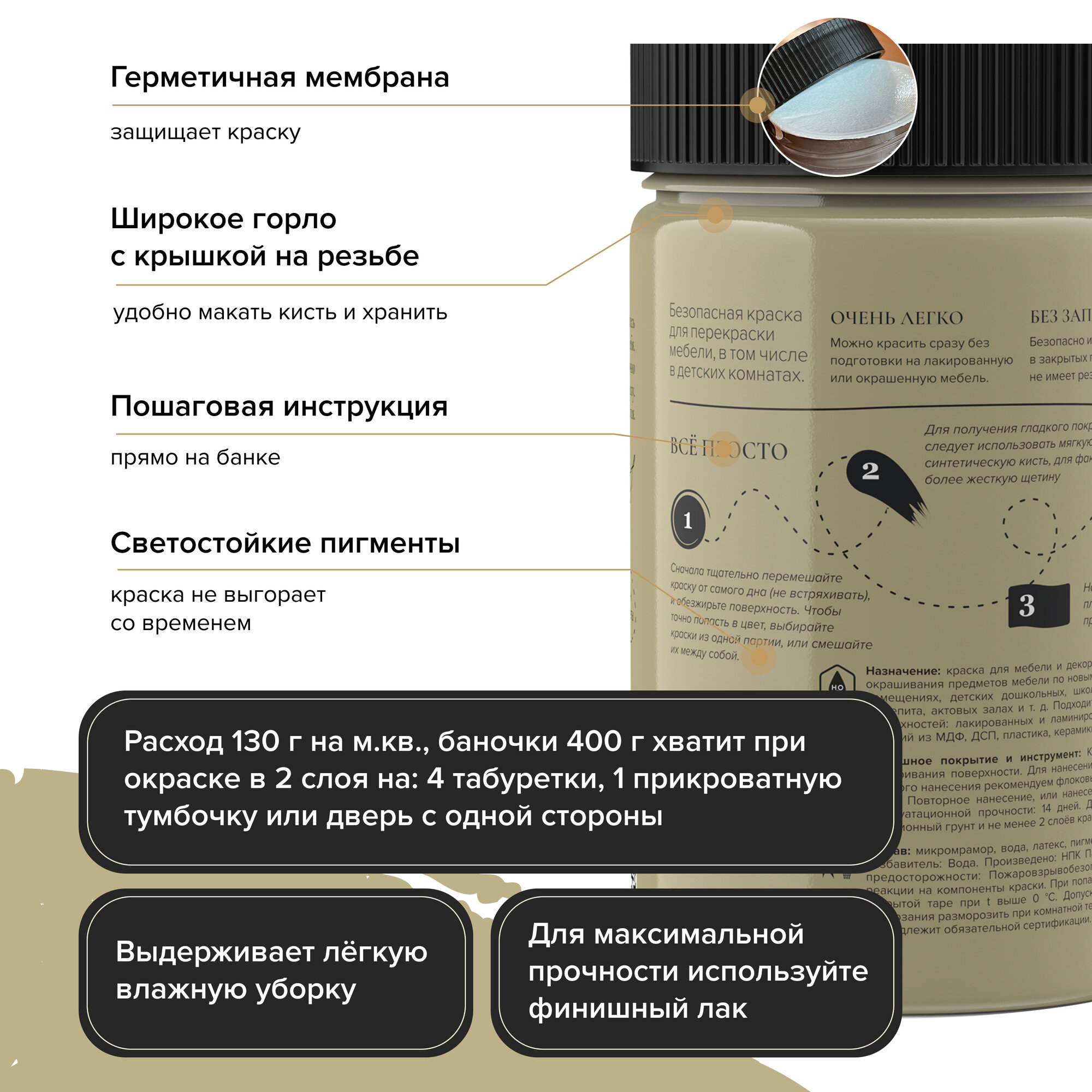 Матовая краска для мебели Aturi Design Mia 0,4 кг, меловая Цвет: Утренний туман, серо бежевый, для декора, без запаха