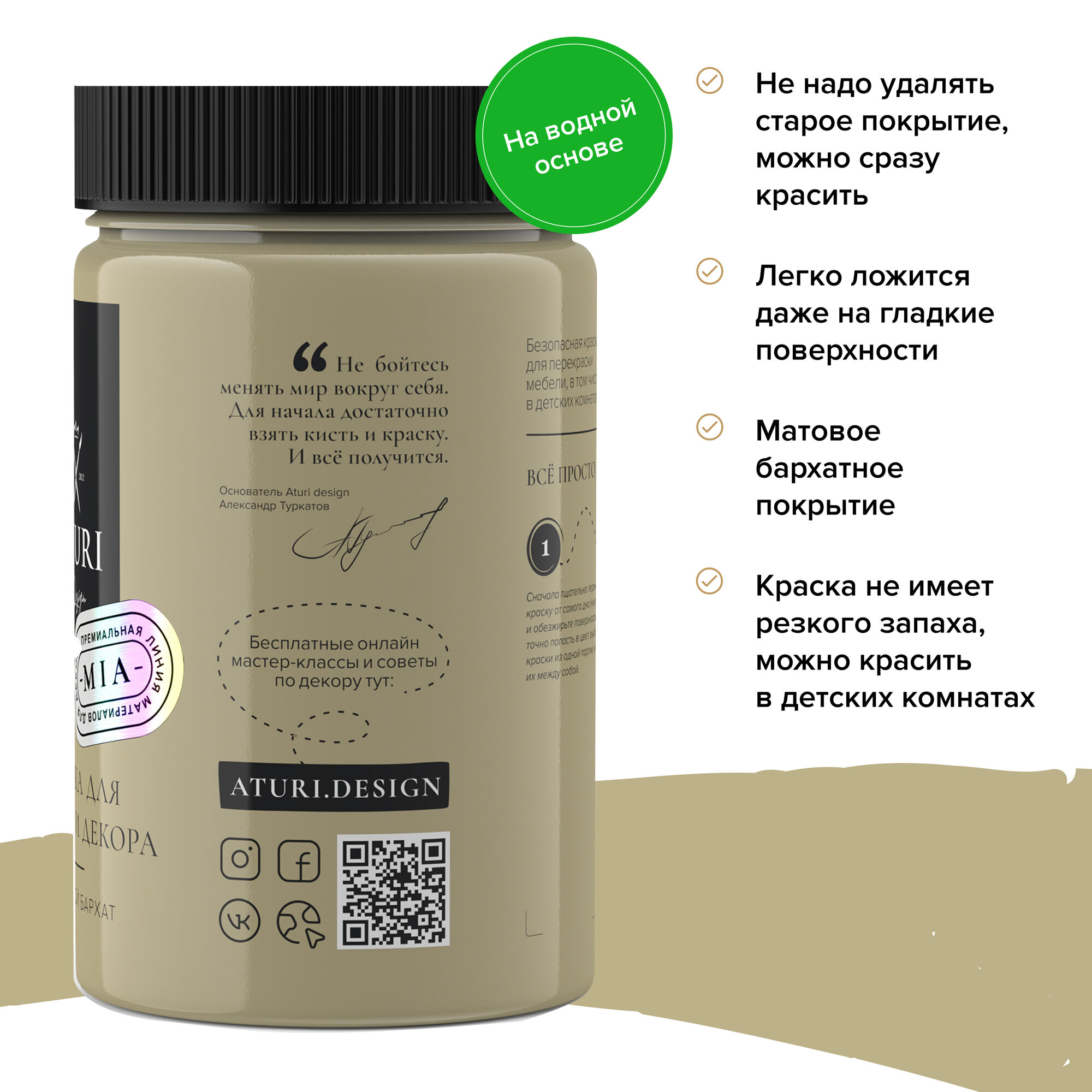 Краска Aturi Design Mia для мебели и декора, кухни и кухонных фасадов, дверей, пластика и металла; Набор, 400гр х 2 шт; Цвет: Оливия, оливковый, зеленый
