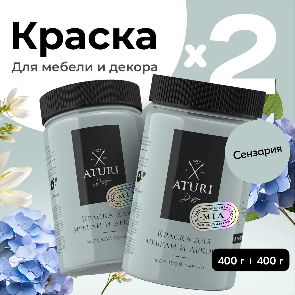 Купить Краска Aturi Design Mia для мебели и декора, кухни и кухонных фасадов, дверей, пластика и металла; Набор, 400гр х 2 шт; Цвет: Сензария