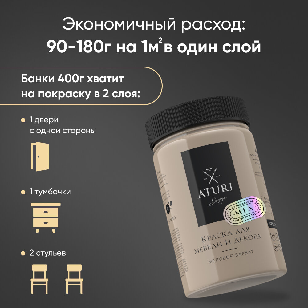 Матовая краска для мебели Aturi Design Mia 0,4 кг, меловая Цвет: Утренний туман, серо бежевый, для декора, без запаха