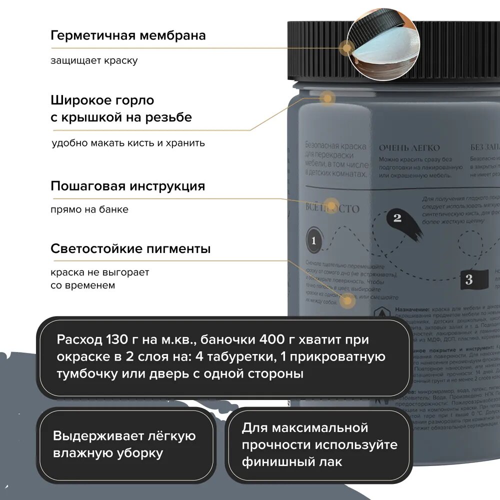 Матовая краска для мебели 0,4 кг без запаха, меловая быстросохнущая мебельная Aturi Design Mia для декора, кухни и кухонных фасадов, дверей, пластика и металла. Цвет: Серые глаза, серая