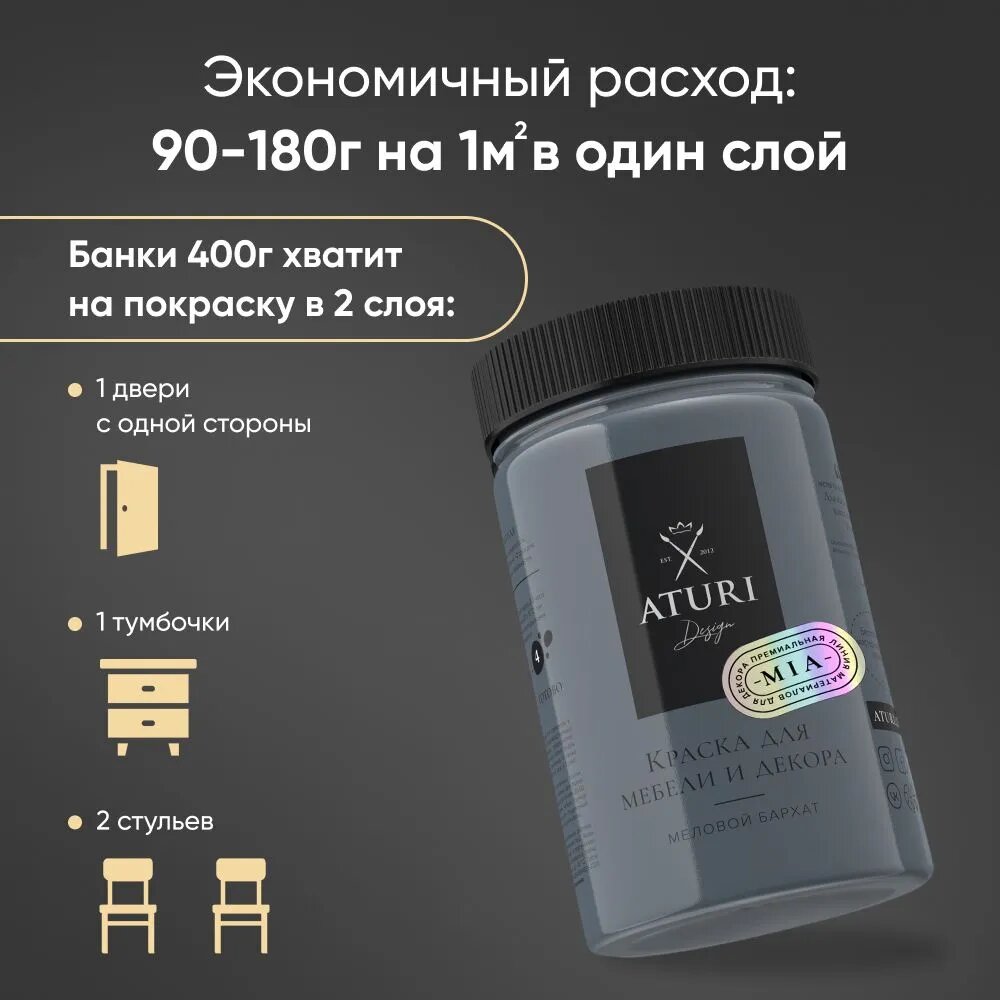 Краска для мебели и декора Aturi Design Mia меловая. Цвет: Черный бархат. Матовая, 0,4 кг, Черный Без запаха.
