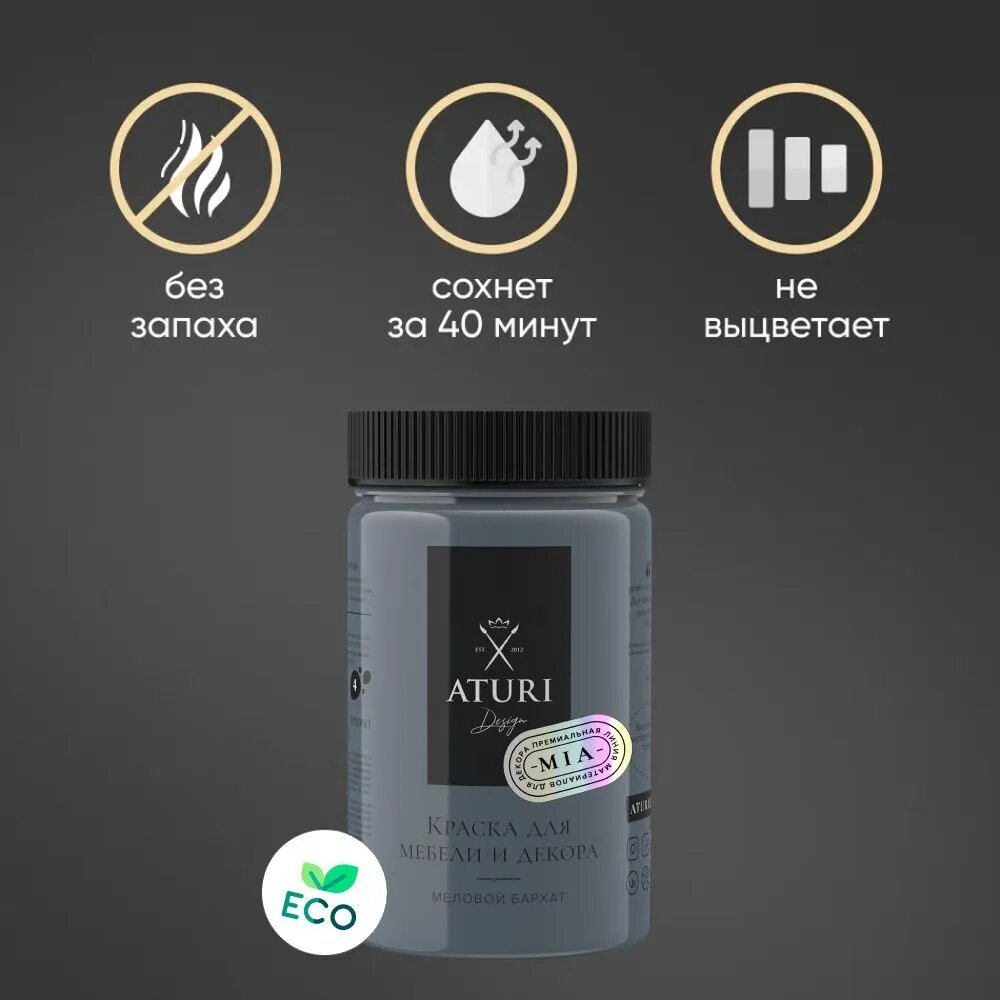Краска Aturi Design Краска для мебели и декора меловая, для кухни и деревянных поверхностей, для дверей, стекла. Без запаха. Не токсичная. Цвет: Черный бархат. Быстросохнущая. Матовая, 0,4 кг, Черный