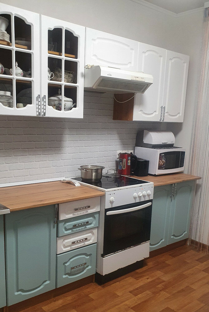 Набор 2 шт по 0,4 кг. Матовая краска для мебели без запаха, меловая быстросохнущая Aturi Design для декора, кухни и кухонных фасадов, дверей, пластика и металла. Цвет: Фисташковый торт, зеленый