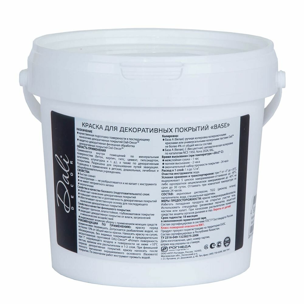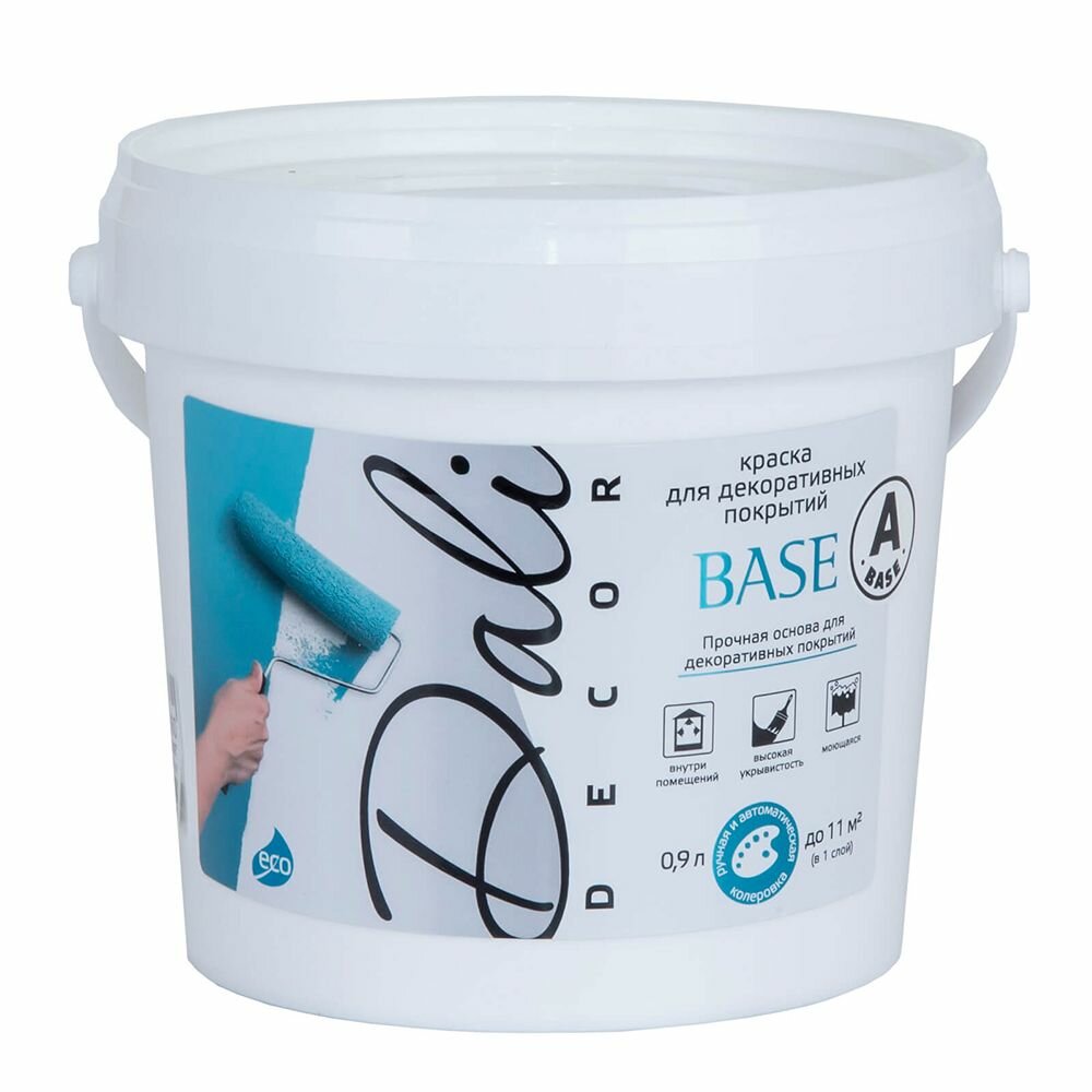 DALI-DECOR Base краска акриловая быстросохнущая тиксотропная матовая белая база А, 0,9 л