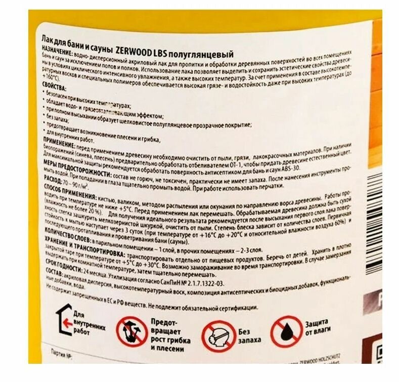 Лак ZERWOOD LBS для бань и саун 0,9кг интересное: