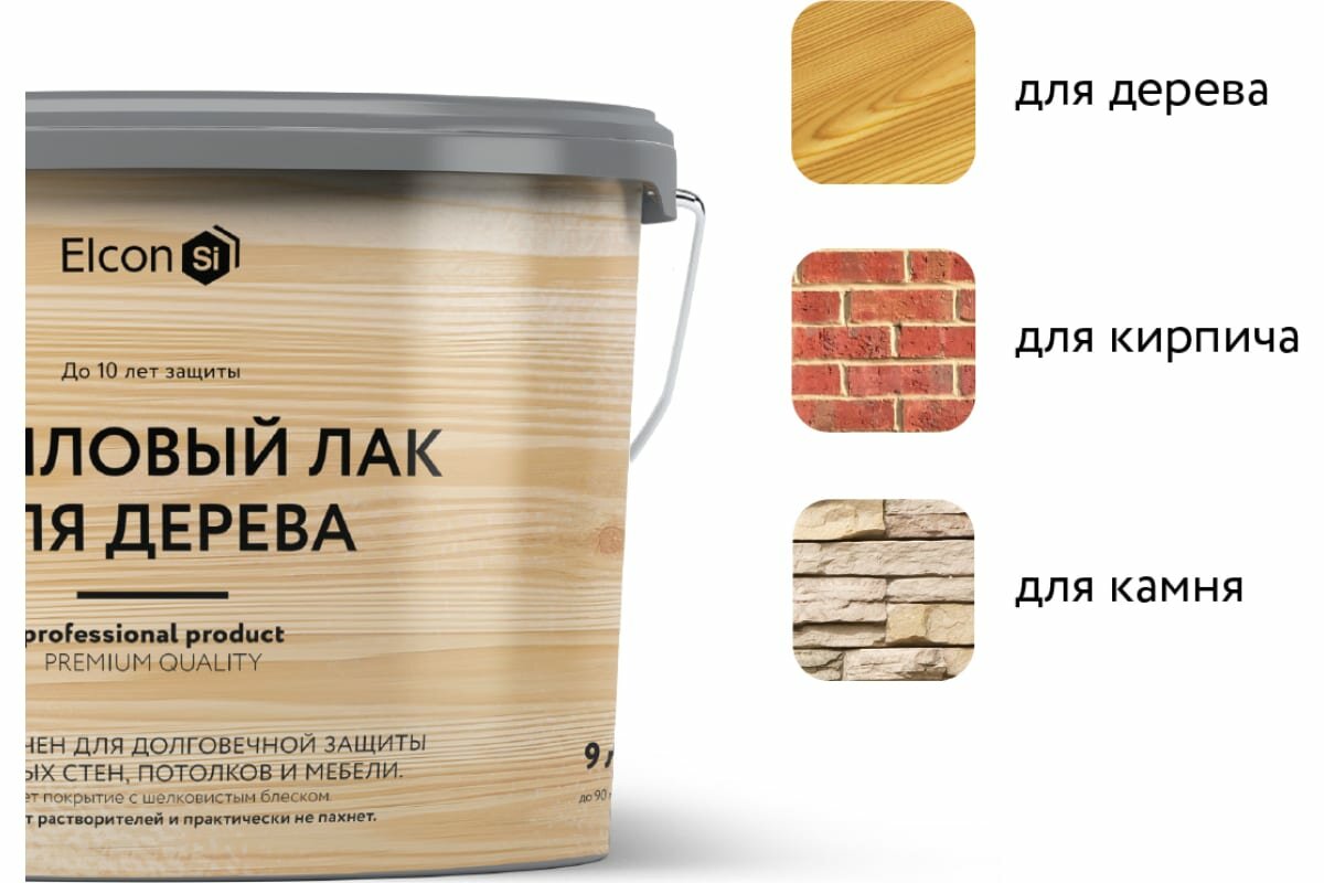 Акриловый лак Elcon для дерева, для кирпича, для бетона, срок защиты - до 10 лет, 9 л