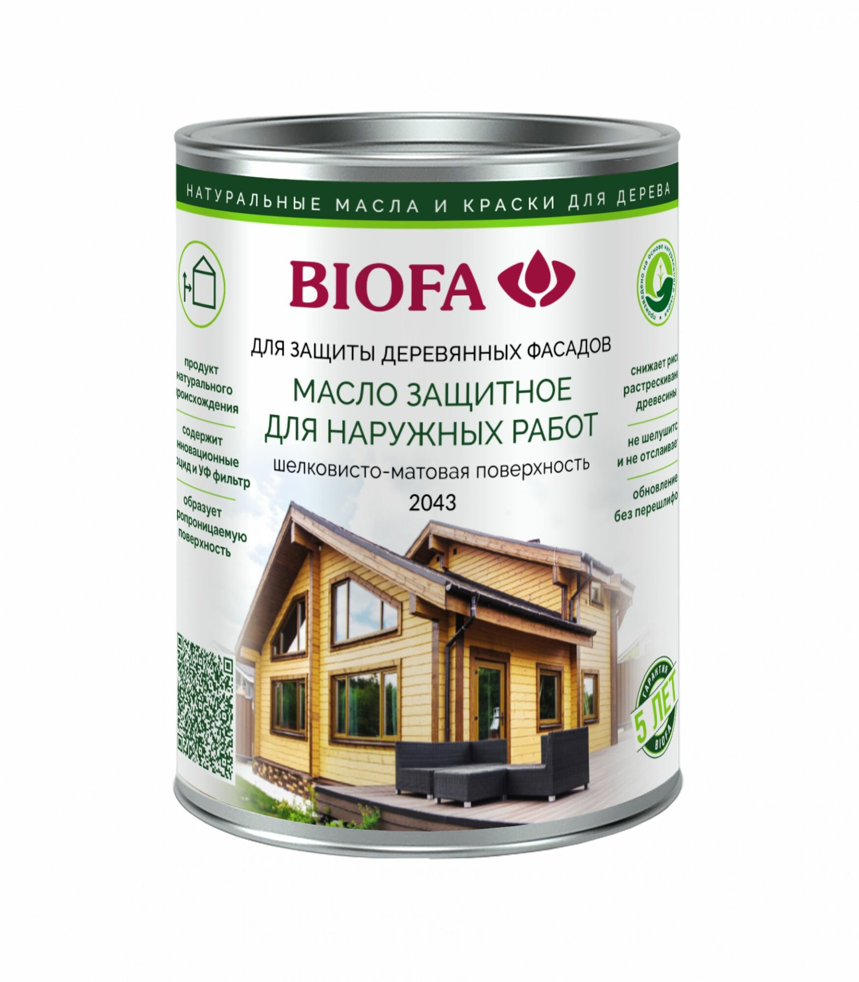 Масло защитное для наружных работ с антисептиком BIOFA 2043 Цвет 4308 Оливковый 0,125л