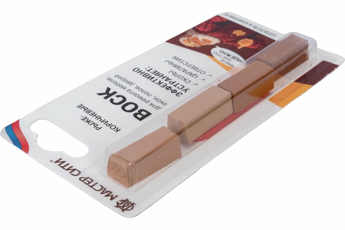 | Дополнительная информация | в набор входит 4 бруска воска разного цвета, шпатель для нанесения и удаления излишков; имеет ограниченную механическую прочность, не дает усадки; образует влагостойкое покрытие |