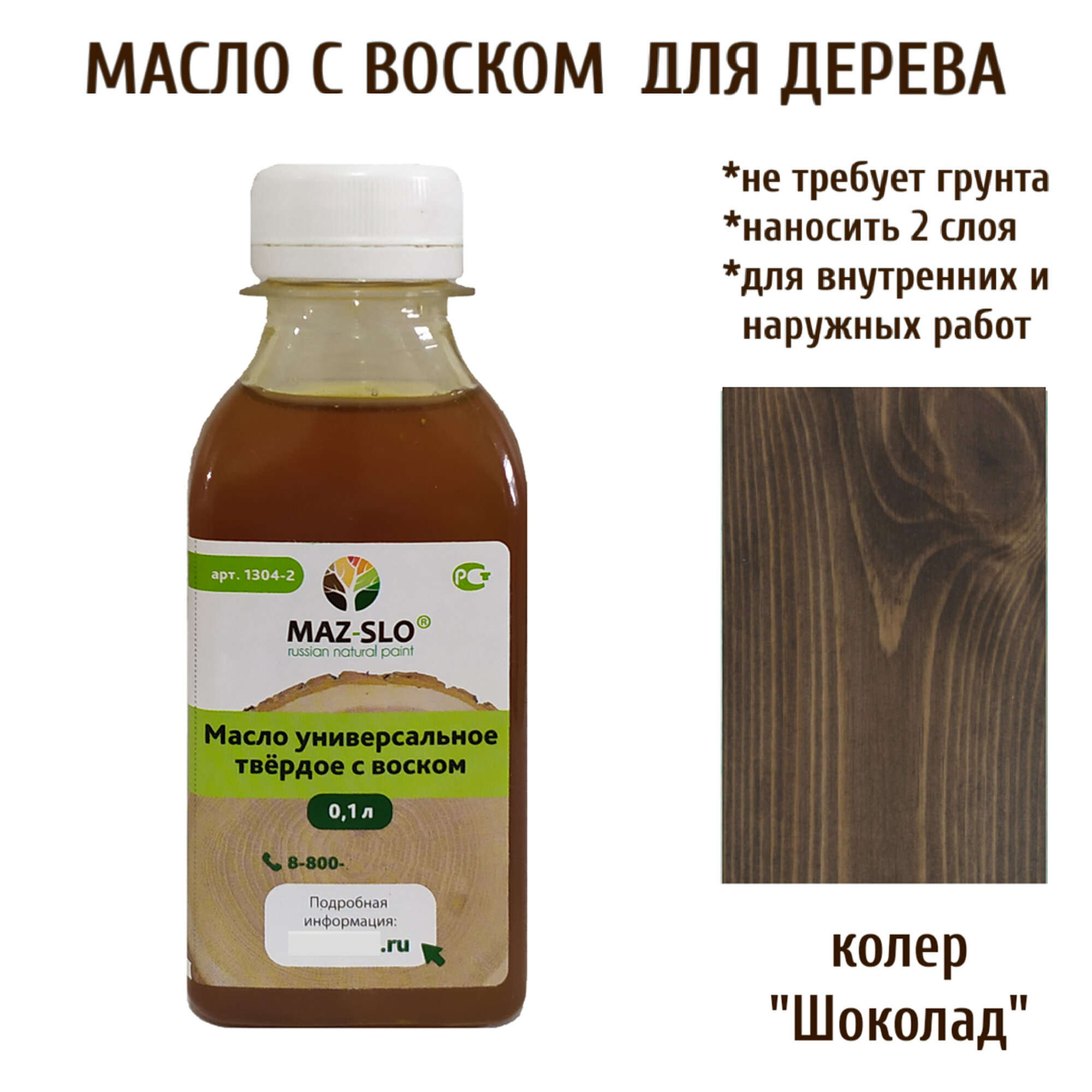Масло твердое универсальное для наружных и внутренних работ с воском MAZ-SLO 100 мл цвет "Какао"