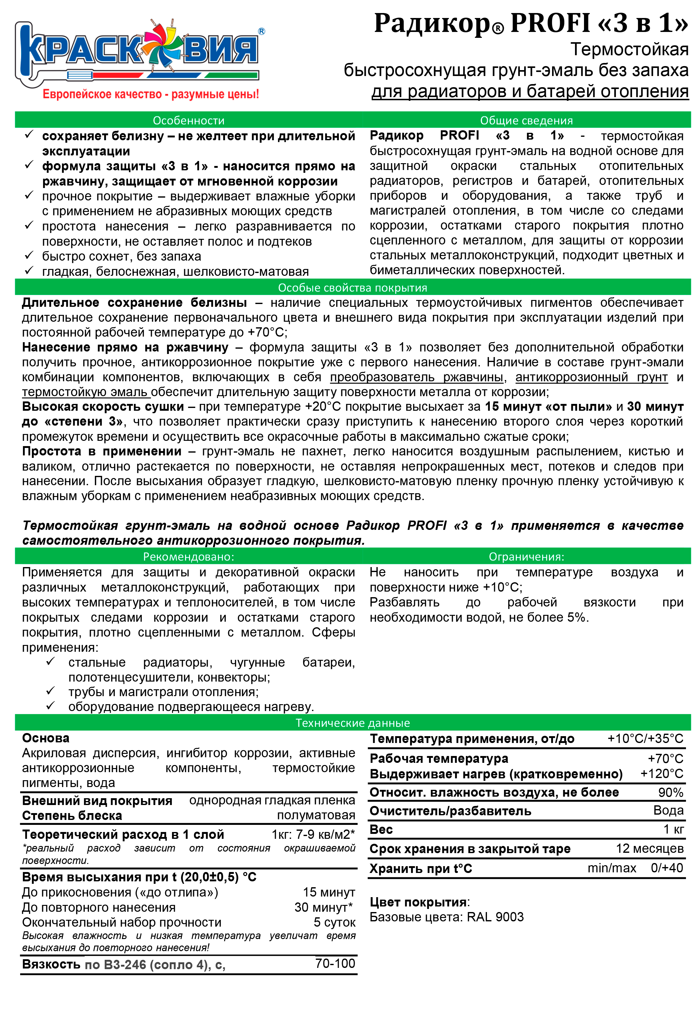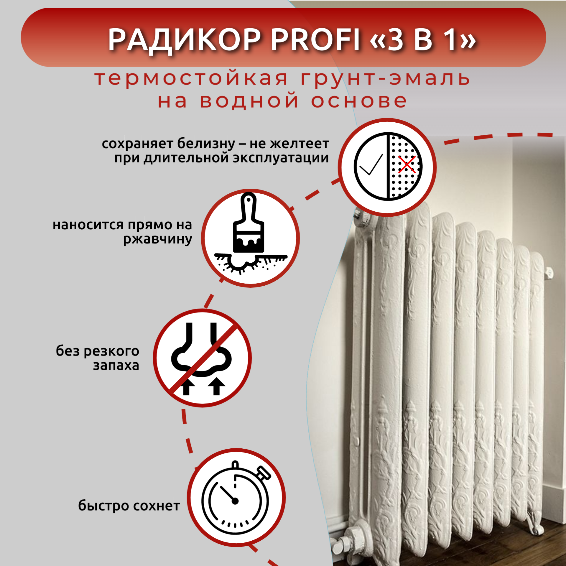 Краска для радиаторов отопления без запаха, Радикор PROFI 3 в 1, белая интересное: