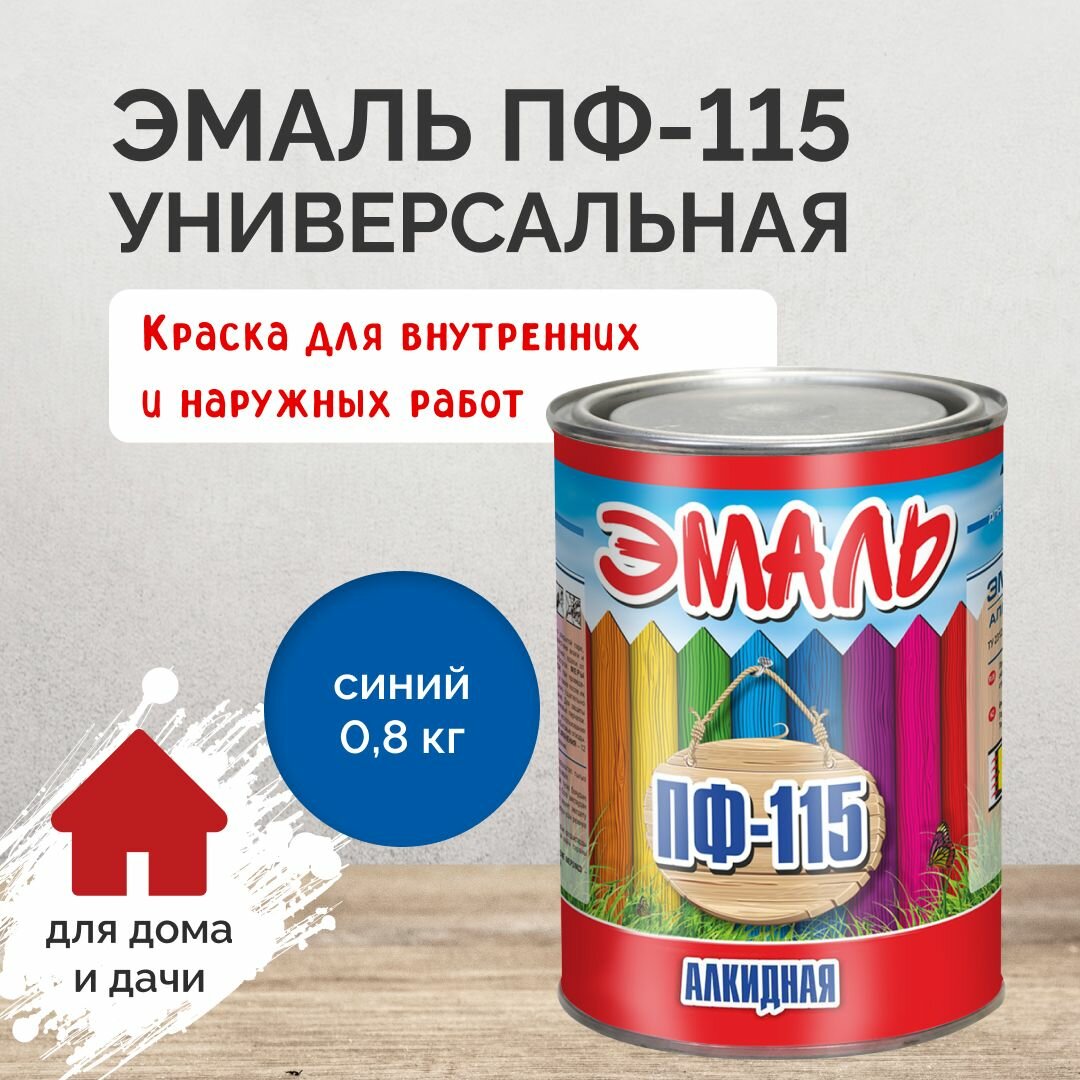 Купить Эмаль ПФ-115 синяя 0,8кг, краска универсальная гладкая полуглянцевая