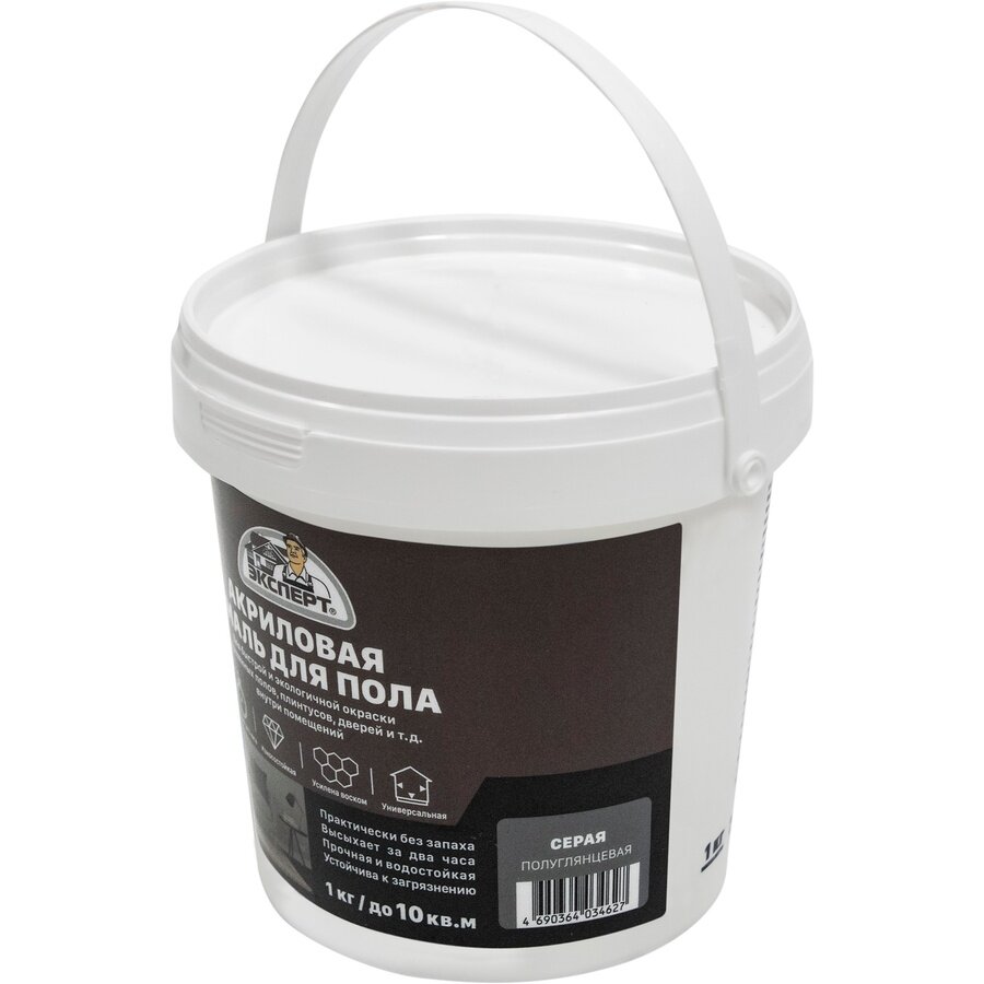 Эмаль акриловая полуглянцевая для пола Эксперт 1кг серый