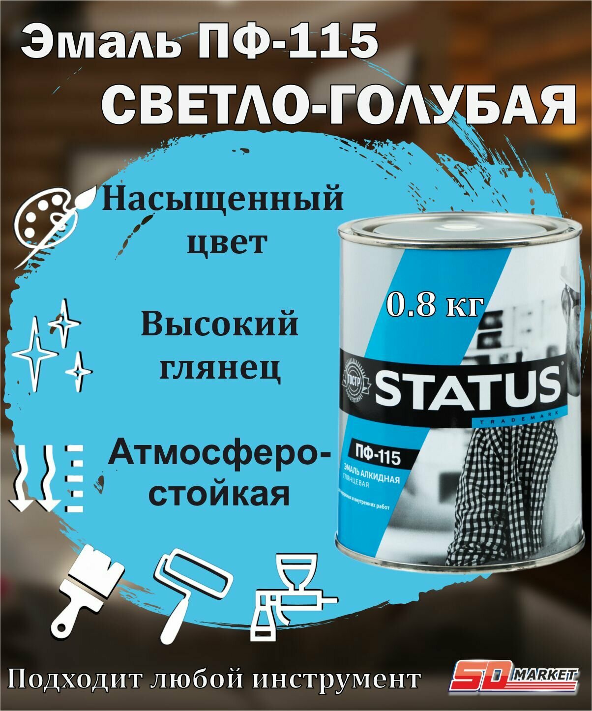 Эмаль голубая ПФ - 115 STATUS 0,8 кг.