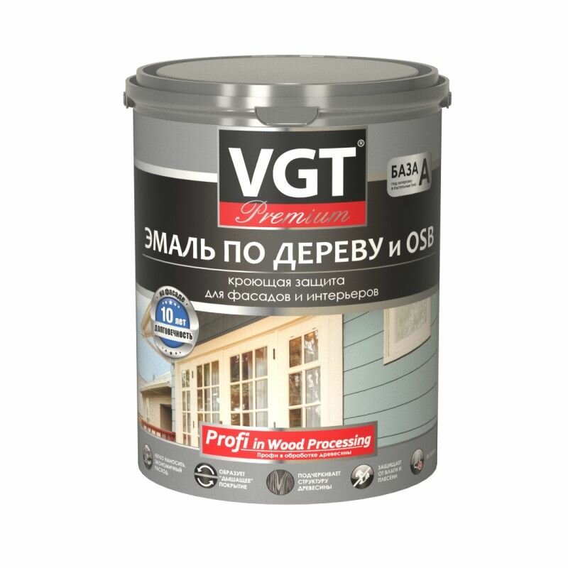 Эмаль по дереву и OSB VGT Premium полуматовая (10кг) А (белая и под колеровку)