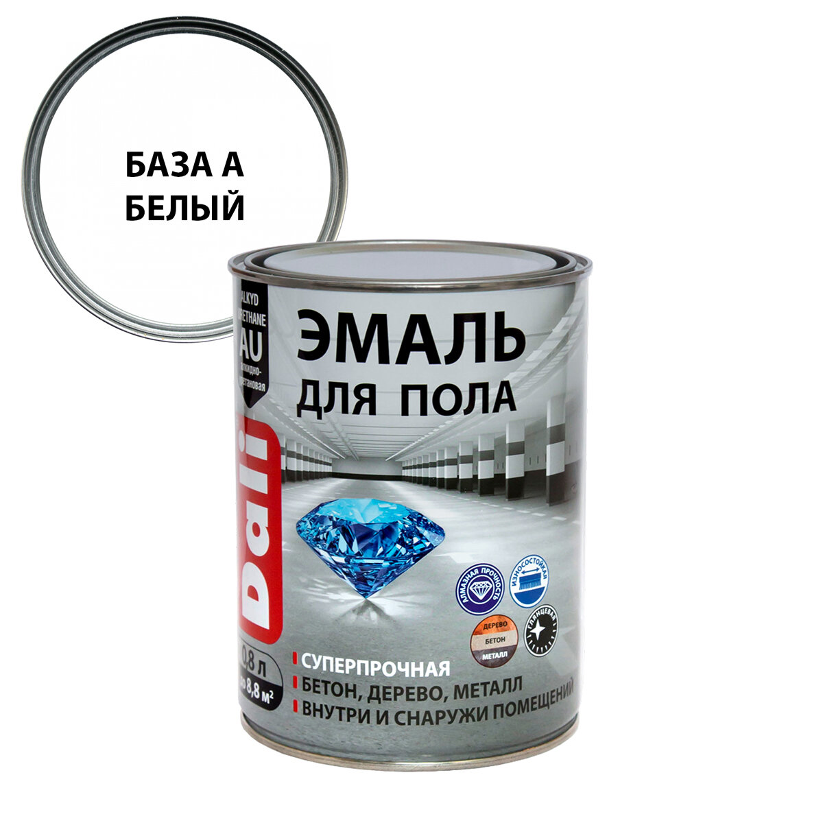 Эмаль для пола Dali , алкидно-уретановая, глянцевая, база A, белая, 0,8 л