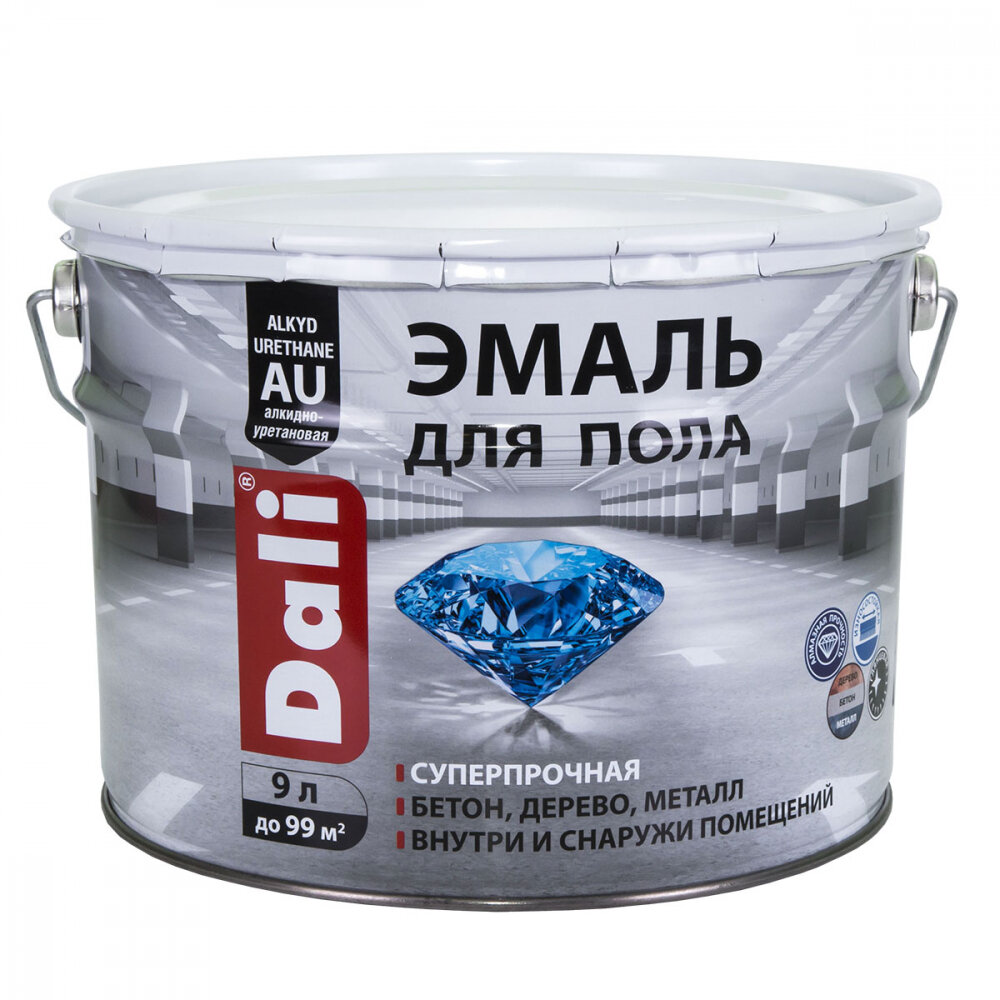 Эмаль для пола алкидно уретановая Dali полуглянцевая (9л) А (белая и под колеровку)