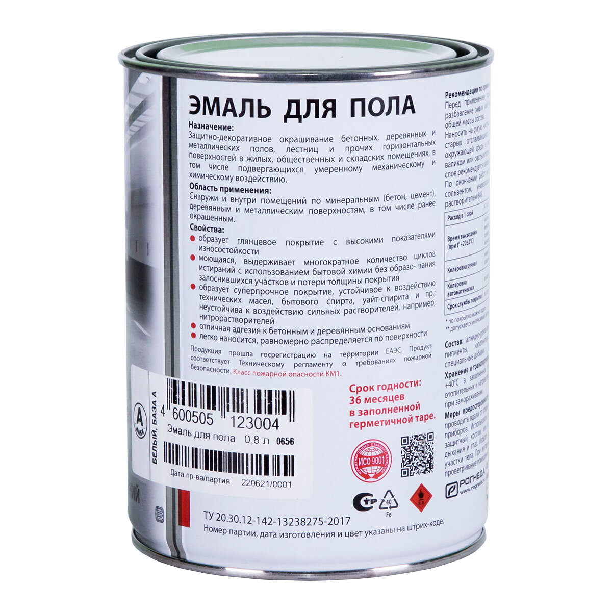 Эмаль для пола Dali , алкидно-уретановая, глянцевая, база A, белая, 0,8 л