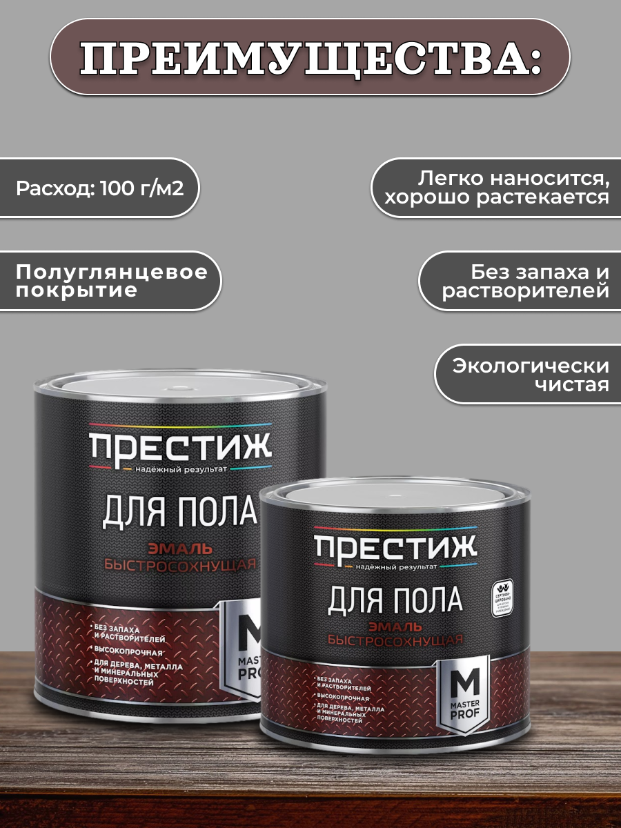 Эмаль Престиж, Мастер, для пола, быстросохнущая, акриловая, полуглянцевая, серая, 0.9 кг