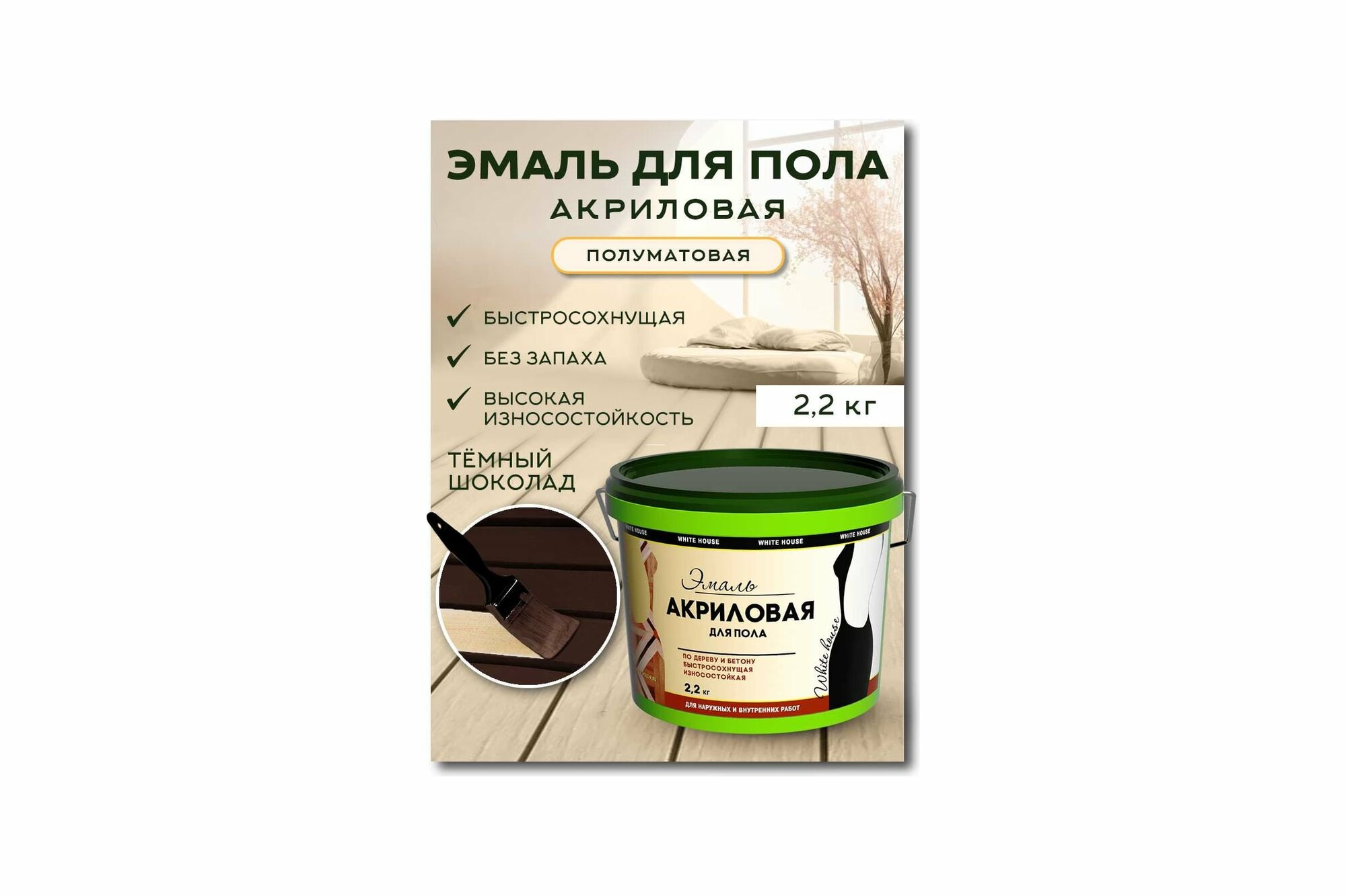 Эмаль-краска для пола White House без запаха, акриловая, полуматовая темный шоколад 2,2 кг