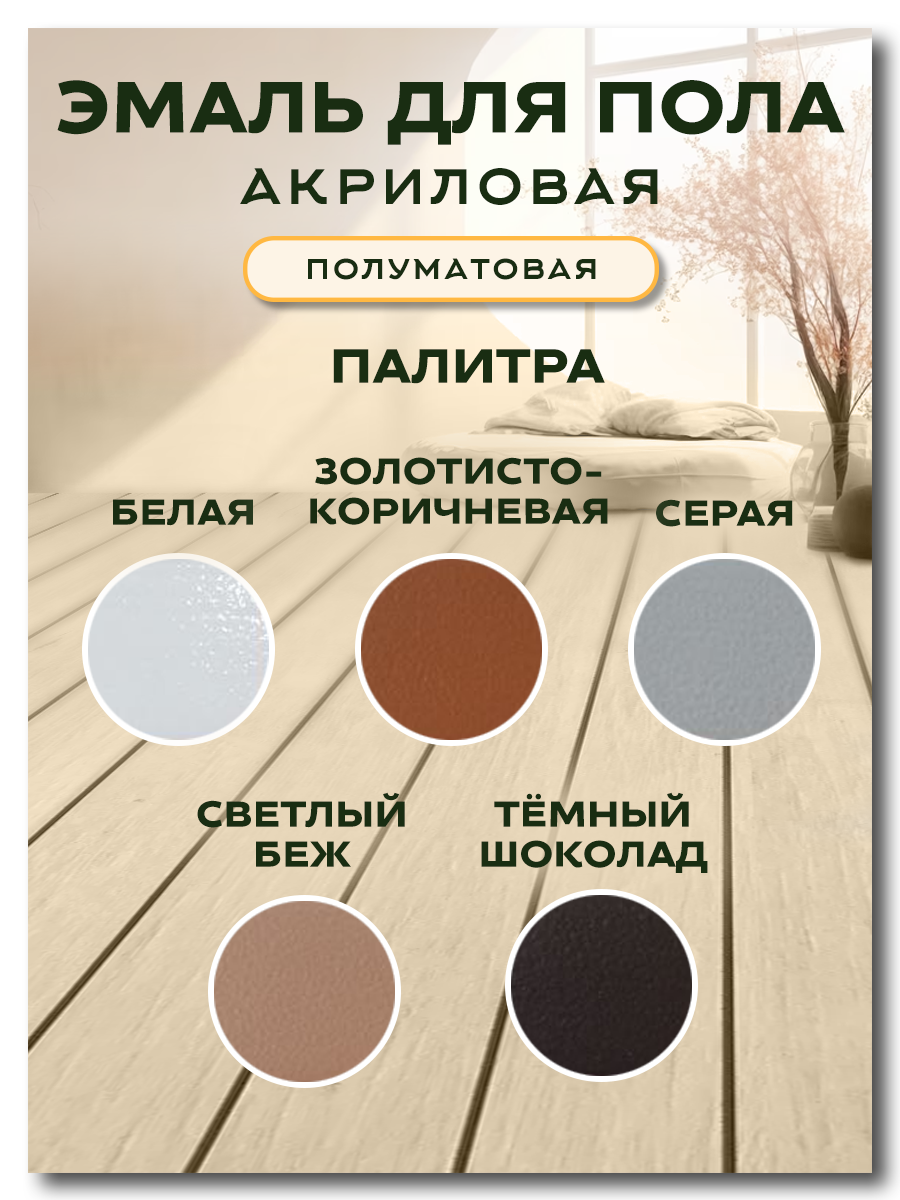 Эмаль Акриловая для Пола White House 0.8кг Золотисто-Коричневый, Полуматовая Без Запаха / Вайт Хаус.
