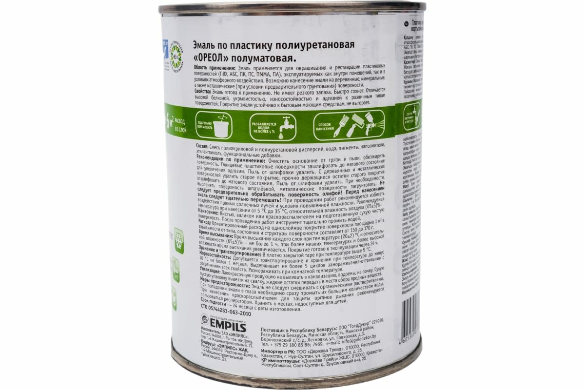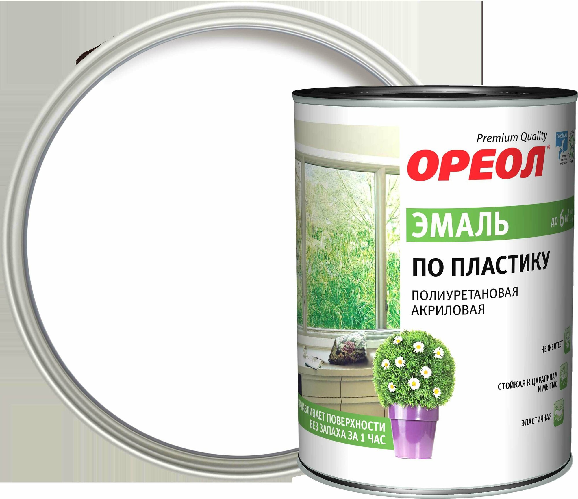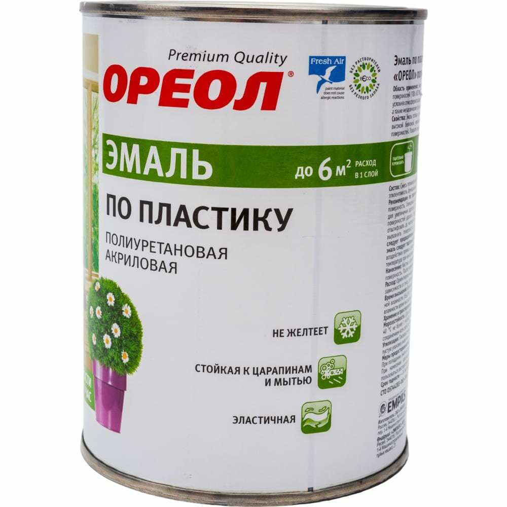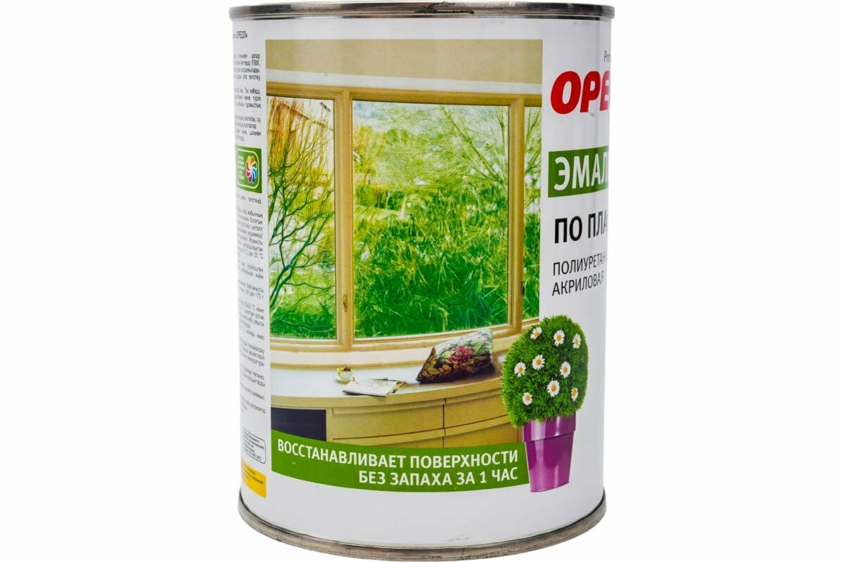 Эмаль по пластику полиуретановая акриловая Ореол полуматовая белая 0,9 кг. интересное: