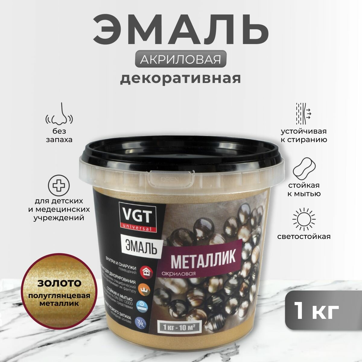 Купить Эмаль универсальная VGT ВД-АК-1179 металлик, 1 кг, золото