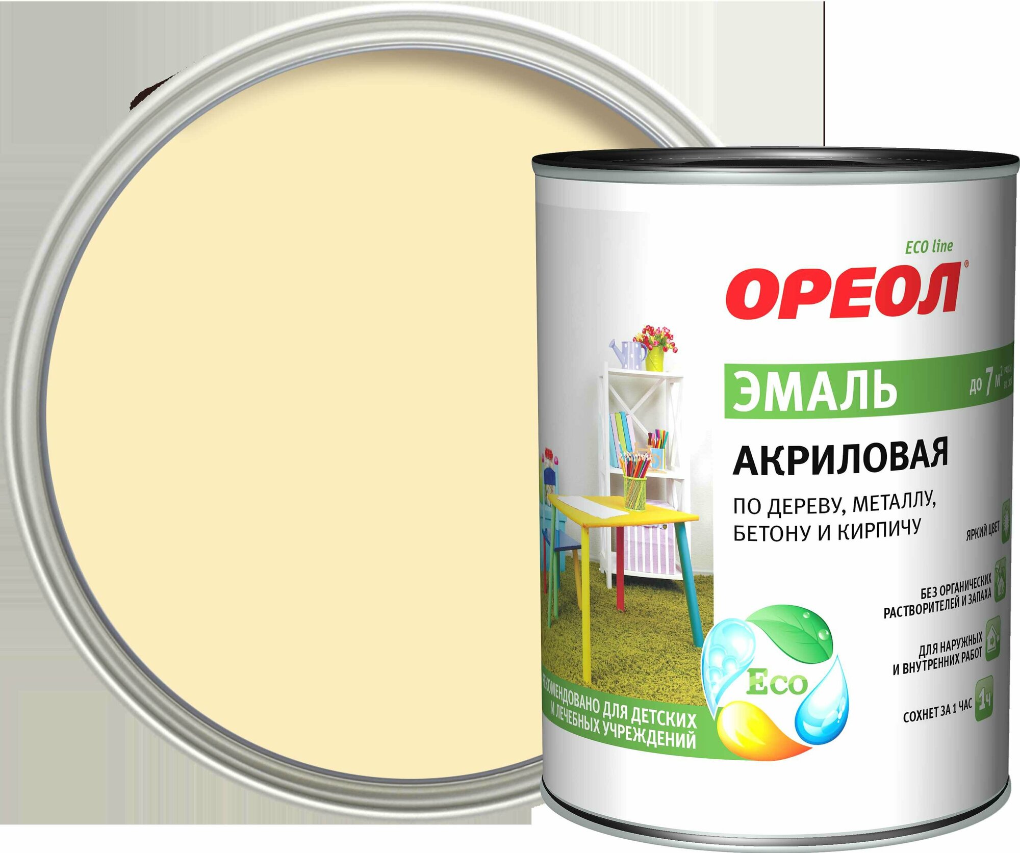 Эмаль Ореол, для внутренних и наружных работ, акриловая, глянцевая, слоновая кость, 0.9 кг