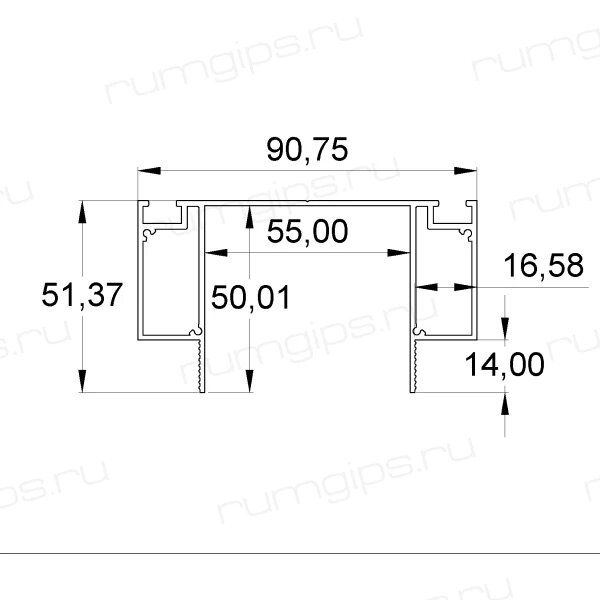 Профиль направляющий (ПН-2) Эконом 0.35 мм 50x40x3000 мм