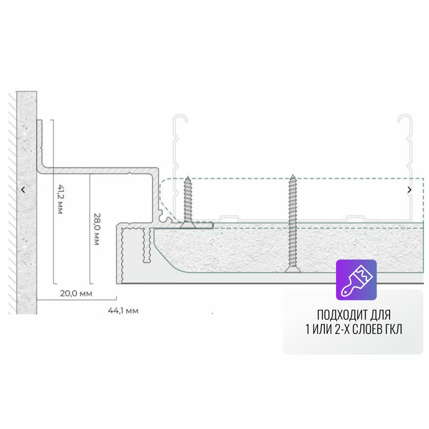 | Подробная комплектация | Теневой профиль для потолка из ГКЛ - 2 метра 1 штука |