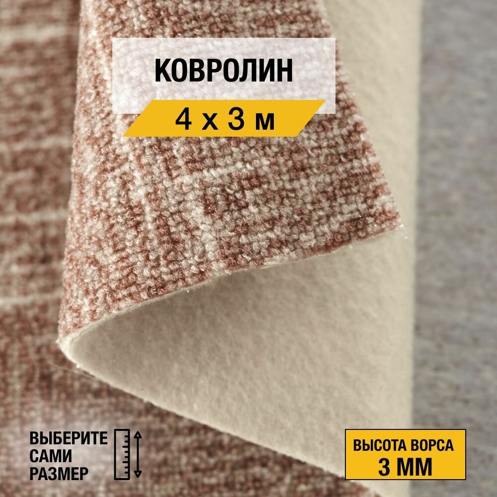 Ковролин, напольное покрытие "Элиз 17 принт" 3х4 м. Ковролин метражом "Нева Тафт", коллекция Принт, петлевой, светло-коричневого цвета с высотой ворса 3 мм.