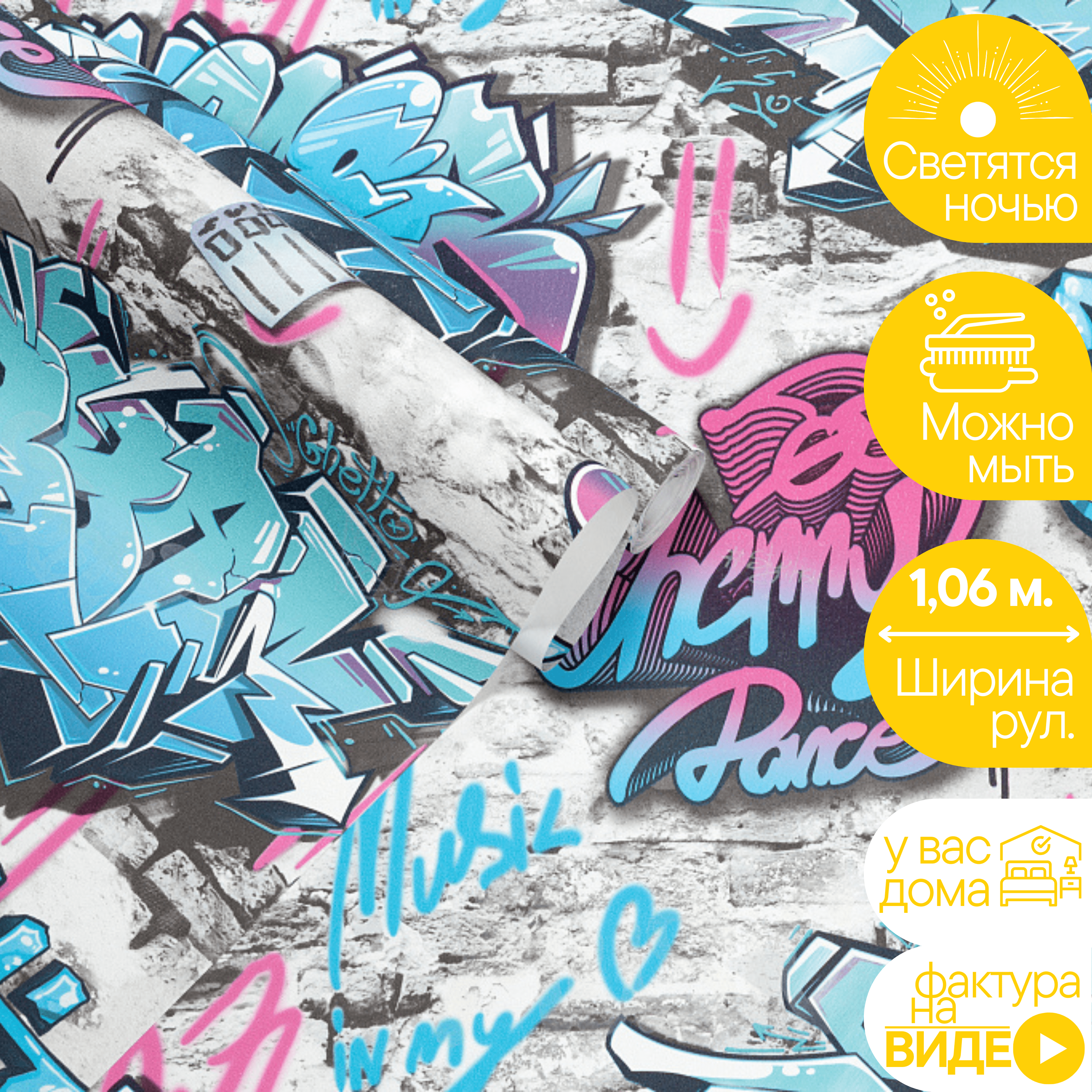 СохранитьОбои Винил на флизелине KOF-H Граффити, в кухню, зал, детскую, прихожую, спальню, светящиеся F282106 интересное: