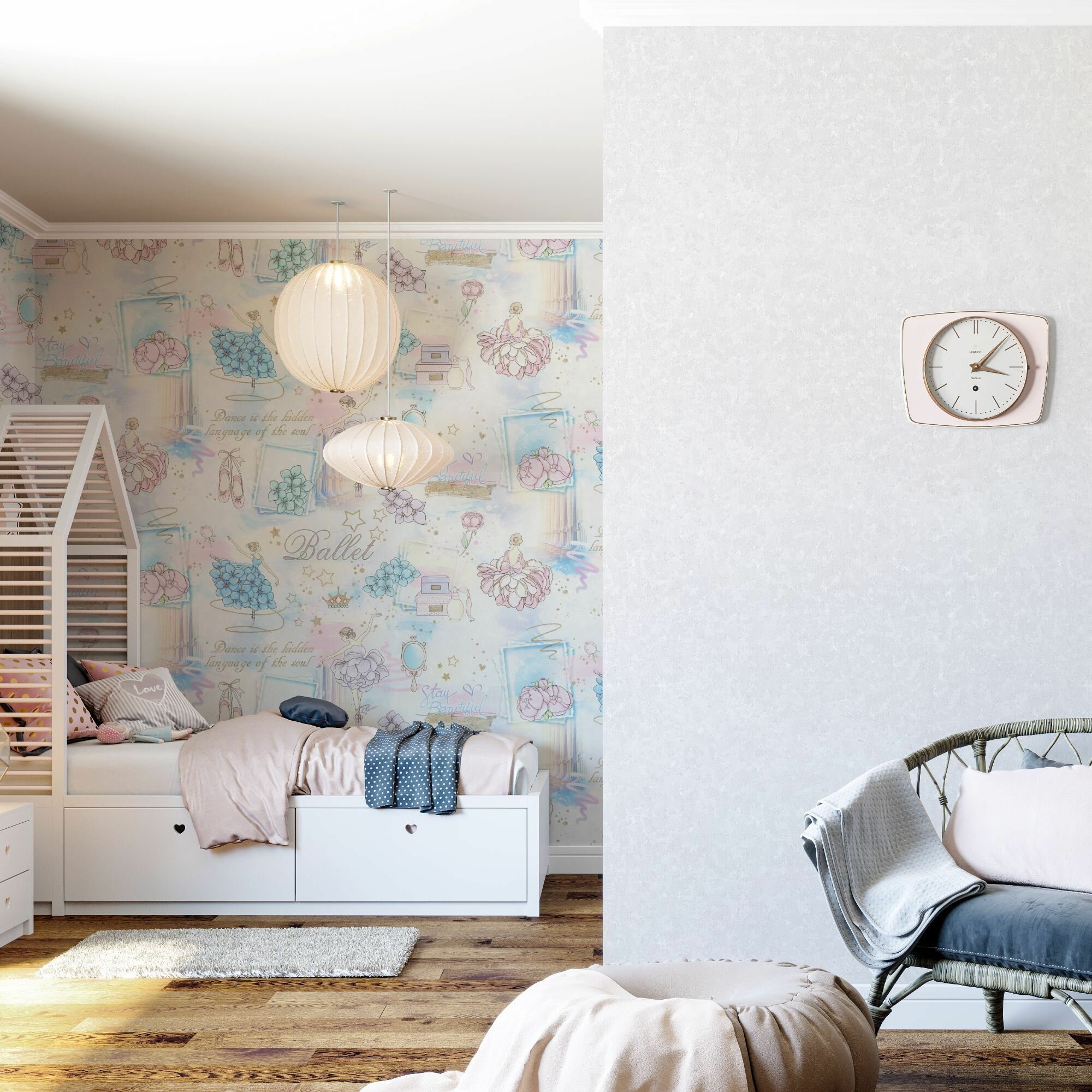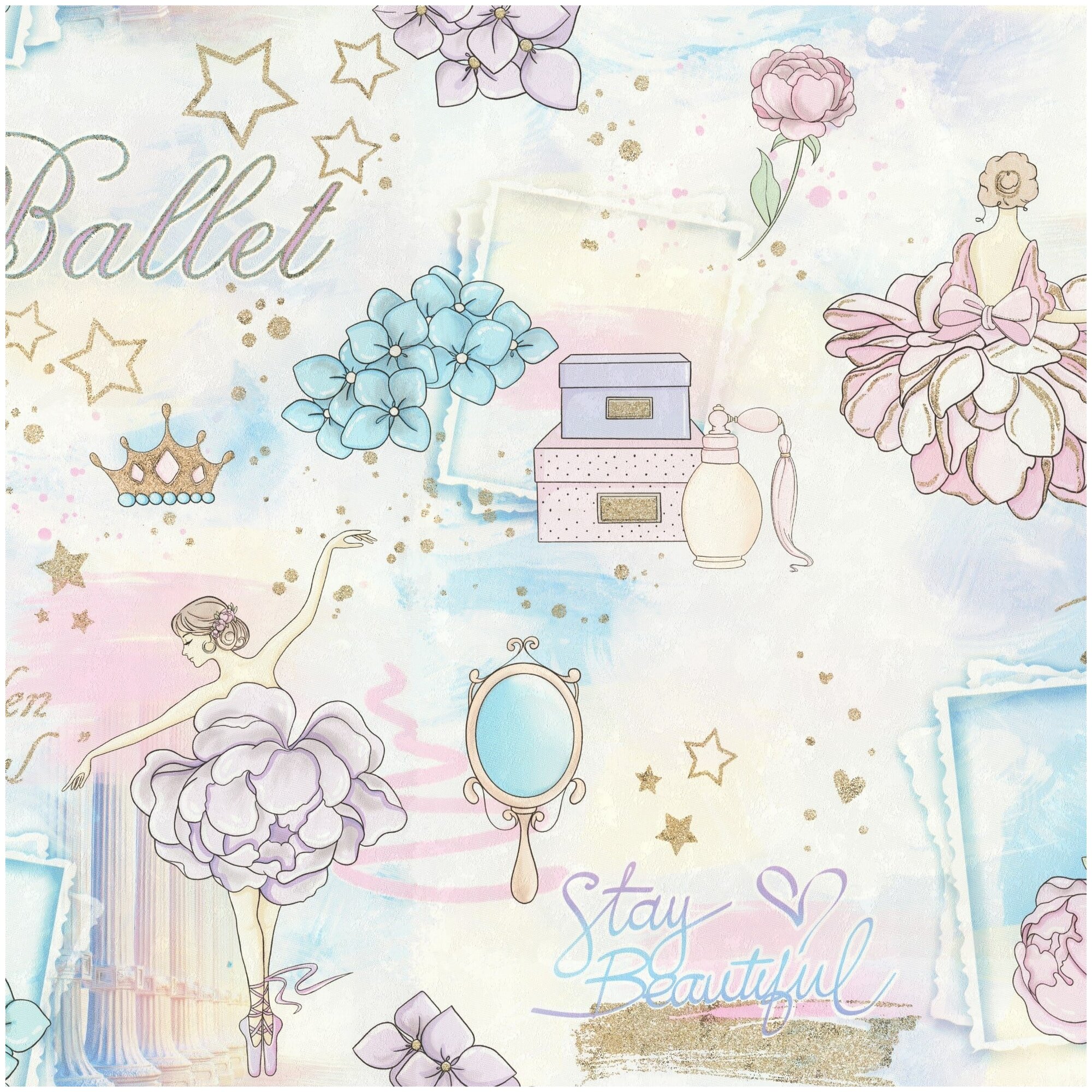 Обои виниловые на флизелиновой основе детские, балерина, горячее тиснение, моющиеся, 1.06х10.05м. Палитра Балет для девочек арт. 71905-65