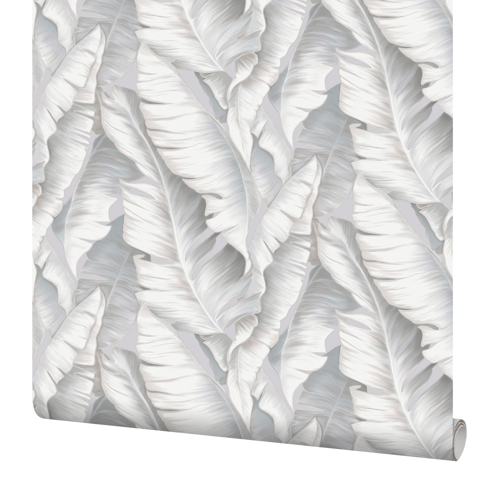 Обои флизелиновые, листья белые на бежевом, метровые, для гостиной, Botanicus