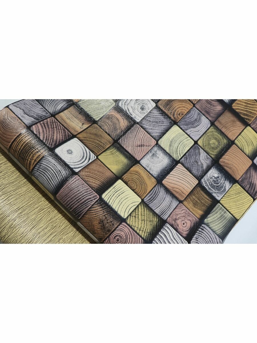 Яркие моющиеся обои для кухни под дерево 53 см желтый,синий,зелено-серый