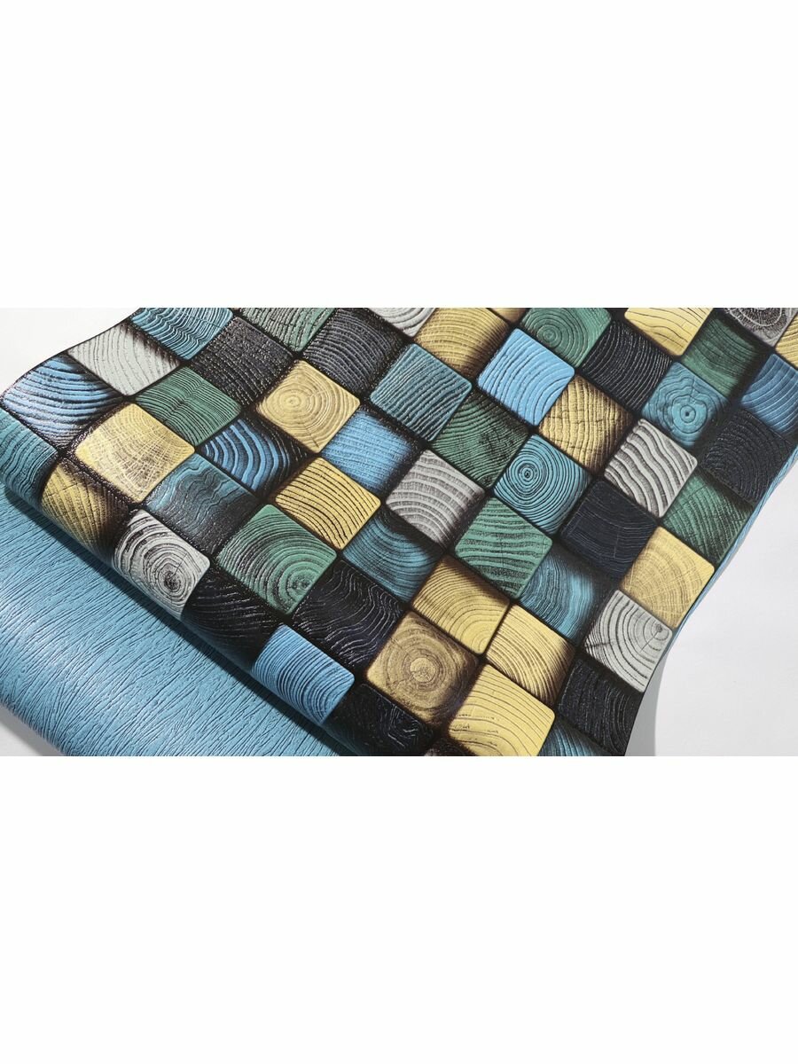 СохранитьЯркие моющиеся обои для кухни под дерево 53 см желтый,синий,зелено-серый интересное: