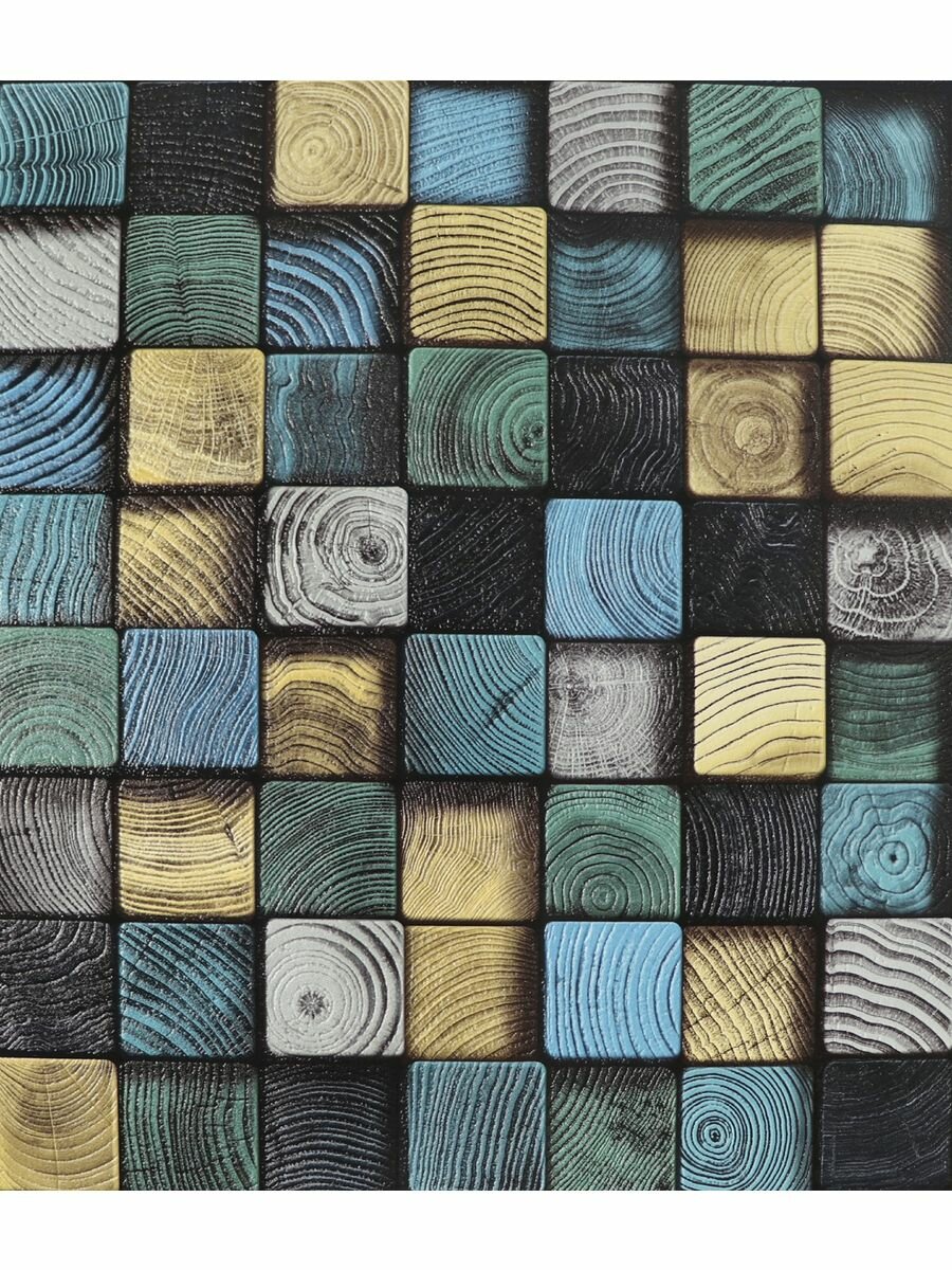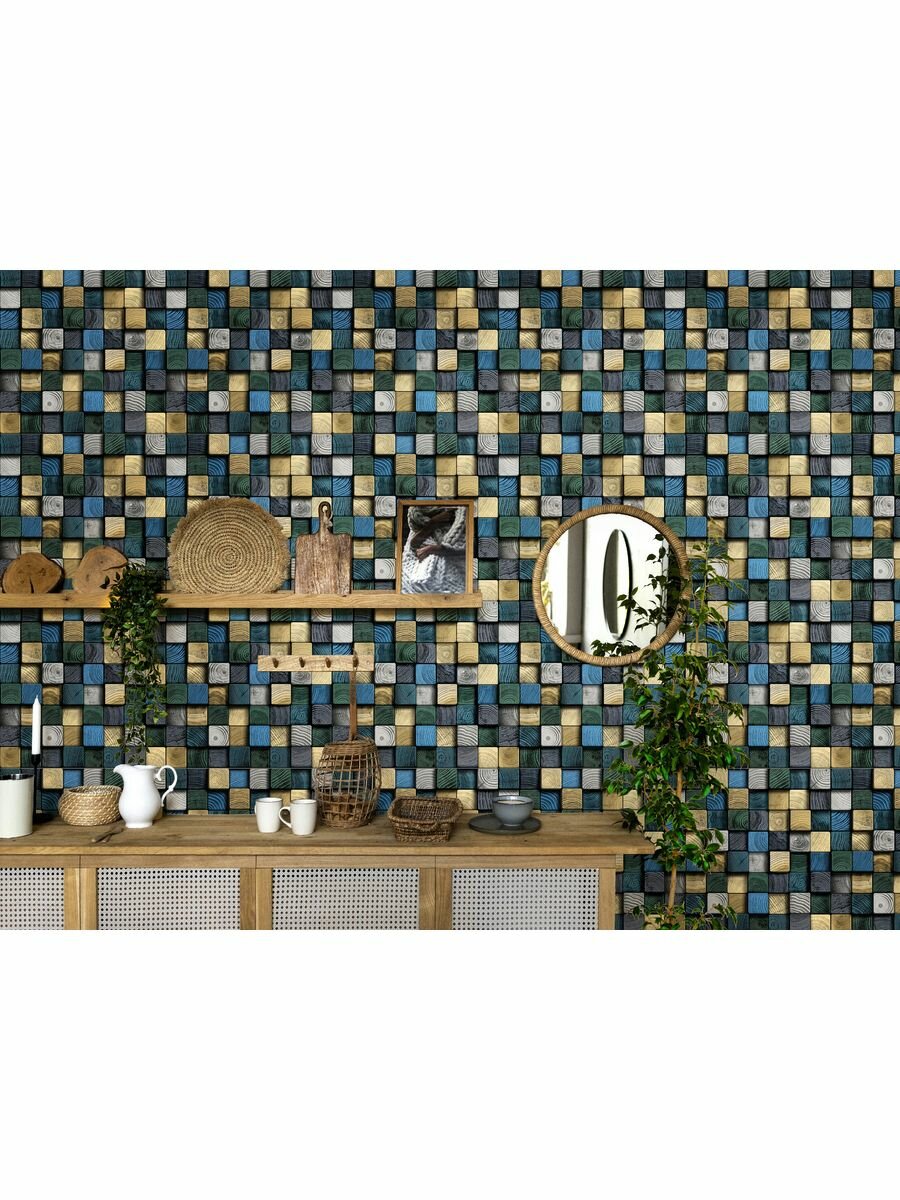 Купить Яркие моющиеся обои для кухни под дерево 53 см желтый,синий,зелено-серый