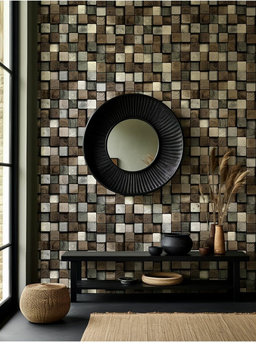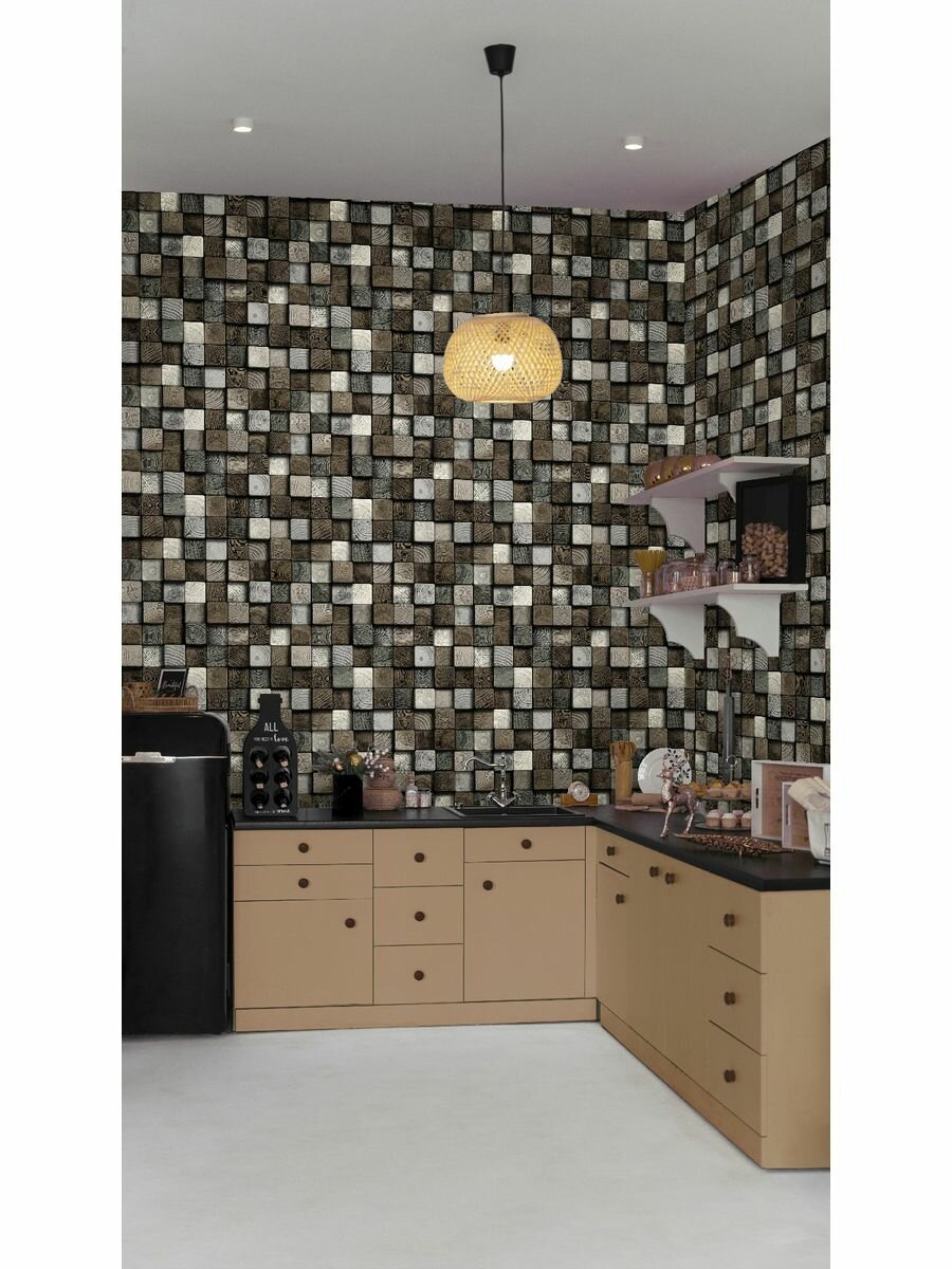 Купить Яркие моющиеся обои для кухни под дерево 53 см серо-черный,молочный,белый