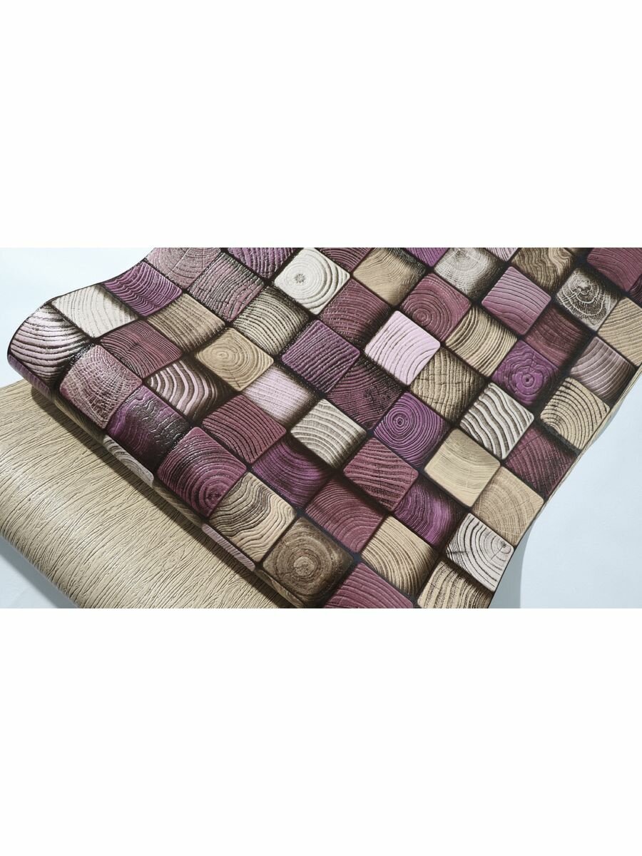 Яркие моющиеся обои для кухни под дерево 53 см лиловый,серый,желто-оранжевый,розовый