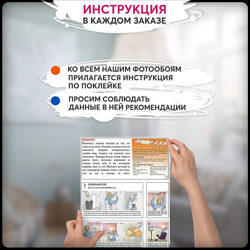 | Дополнительная информация | фотообои изготовлены встык, состоят из четырех полос, высокое качество печати, яркое изображение, четкие линии |