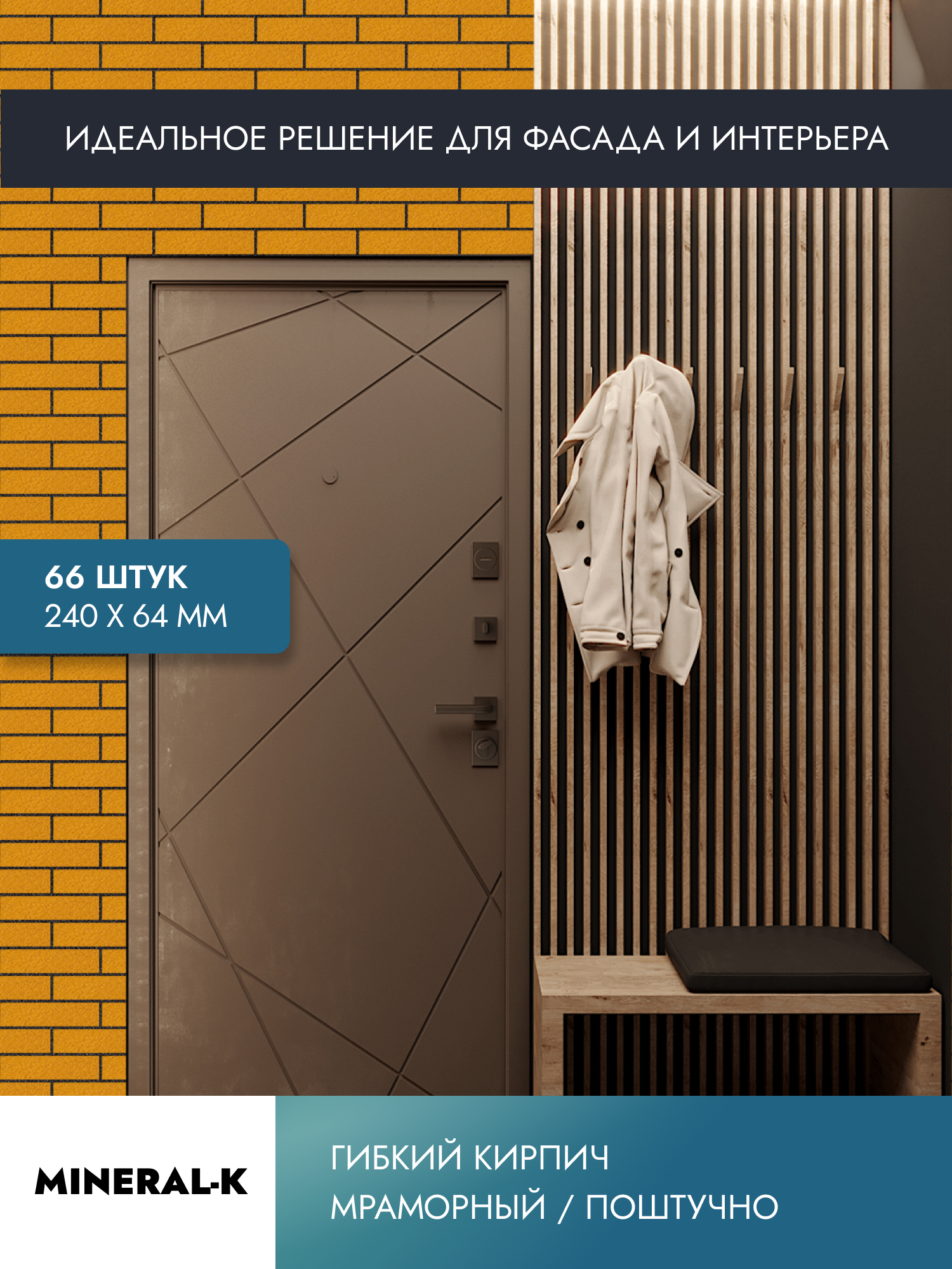 Гибкий кирпич штучно с защитной пленкой - 1 м2/ морковные ноты