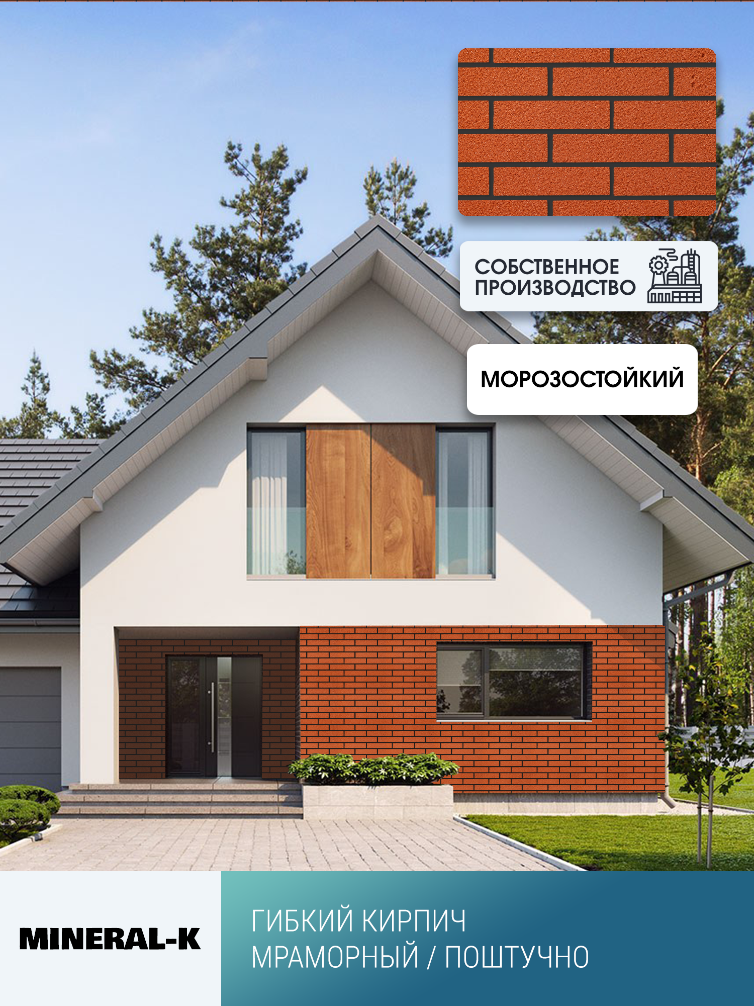 Гибкий кирпич штучно с защитной пленкой - 1 м2/ красная сиена