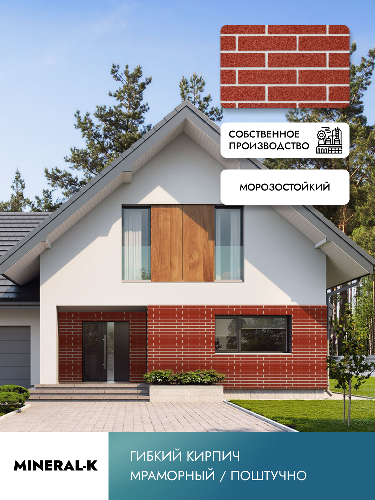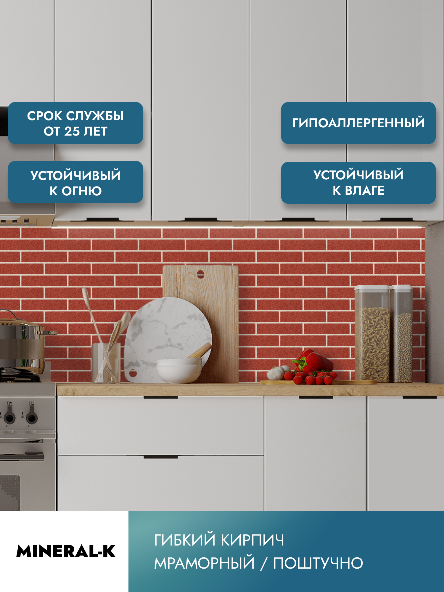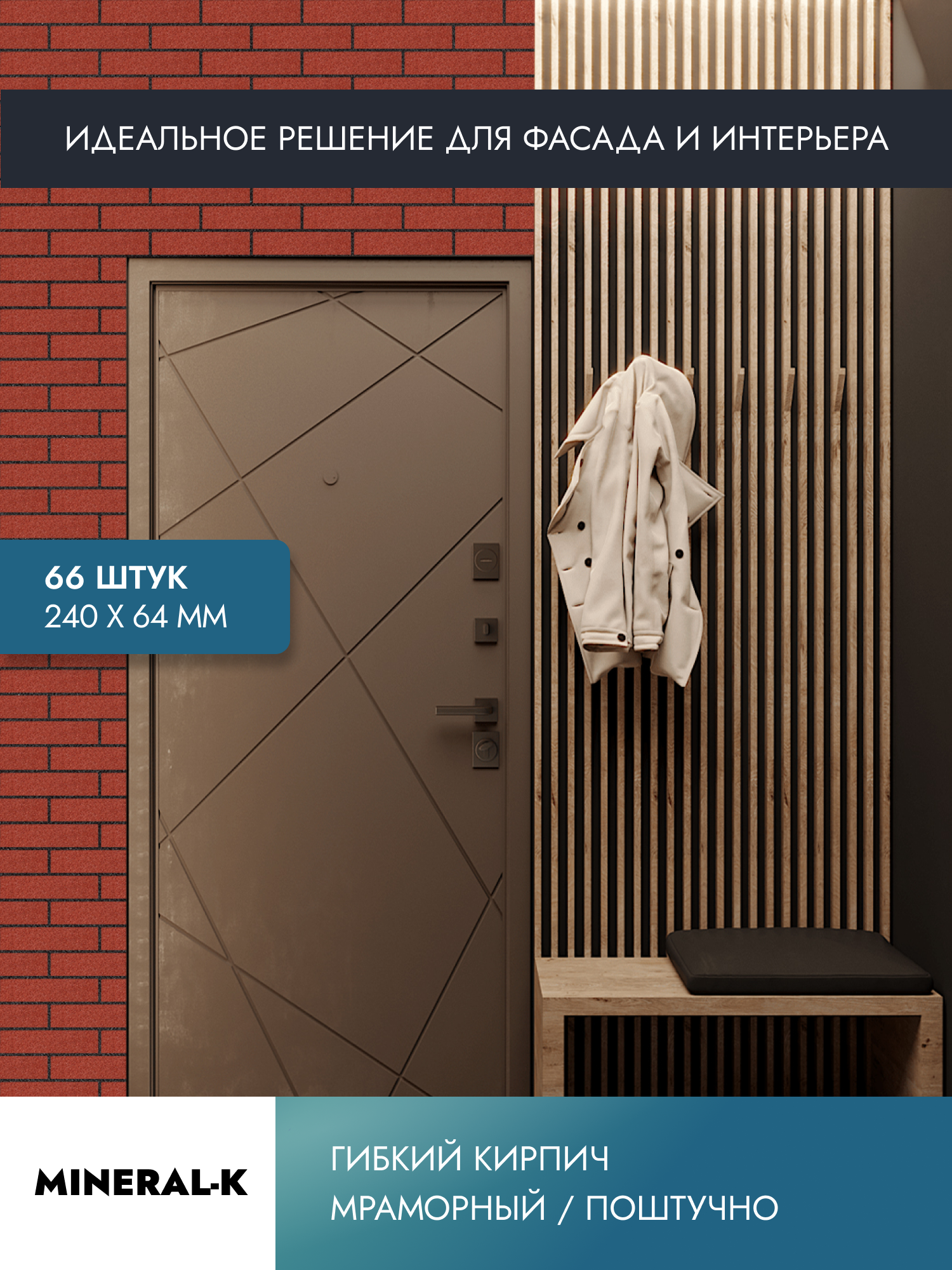 Гибкий кирпич штучно с защитной пленкой - 1 м2/ красная сиена